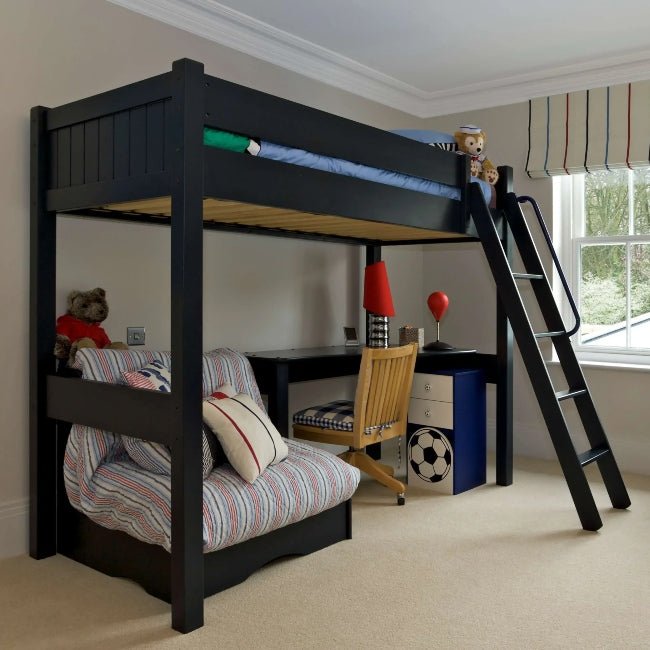 The size of the bunk bed is an important factor to consider. Make sure that the bunk bed has enough clearance between the top bunk and ceiling so that your child can safely climb up and down without hitting their head. You should also consider how much floor space is available in your child's bedroom; you don't want it to be too cramped or crowded! Additionally, check that guardrails on both sides of the top bunk are secure and fully functioning.