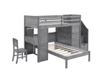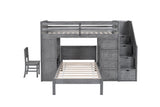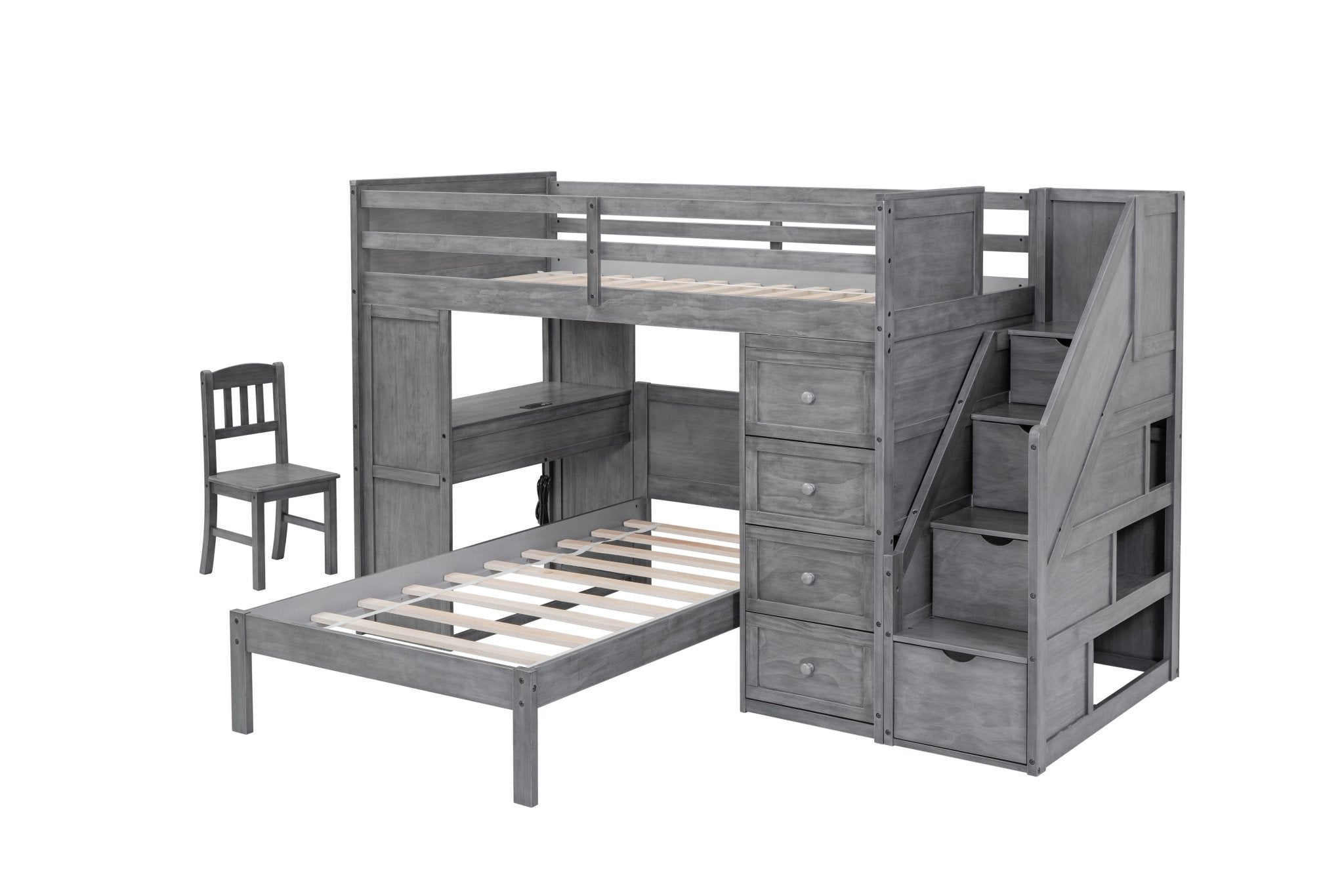 4Pcs Bunk Bed Set With Writing Desk, Chest, And Chair - Grey