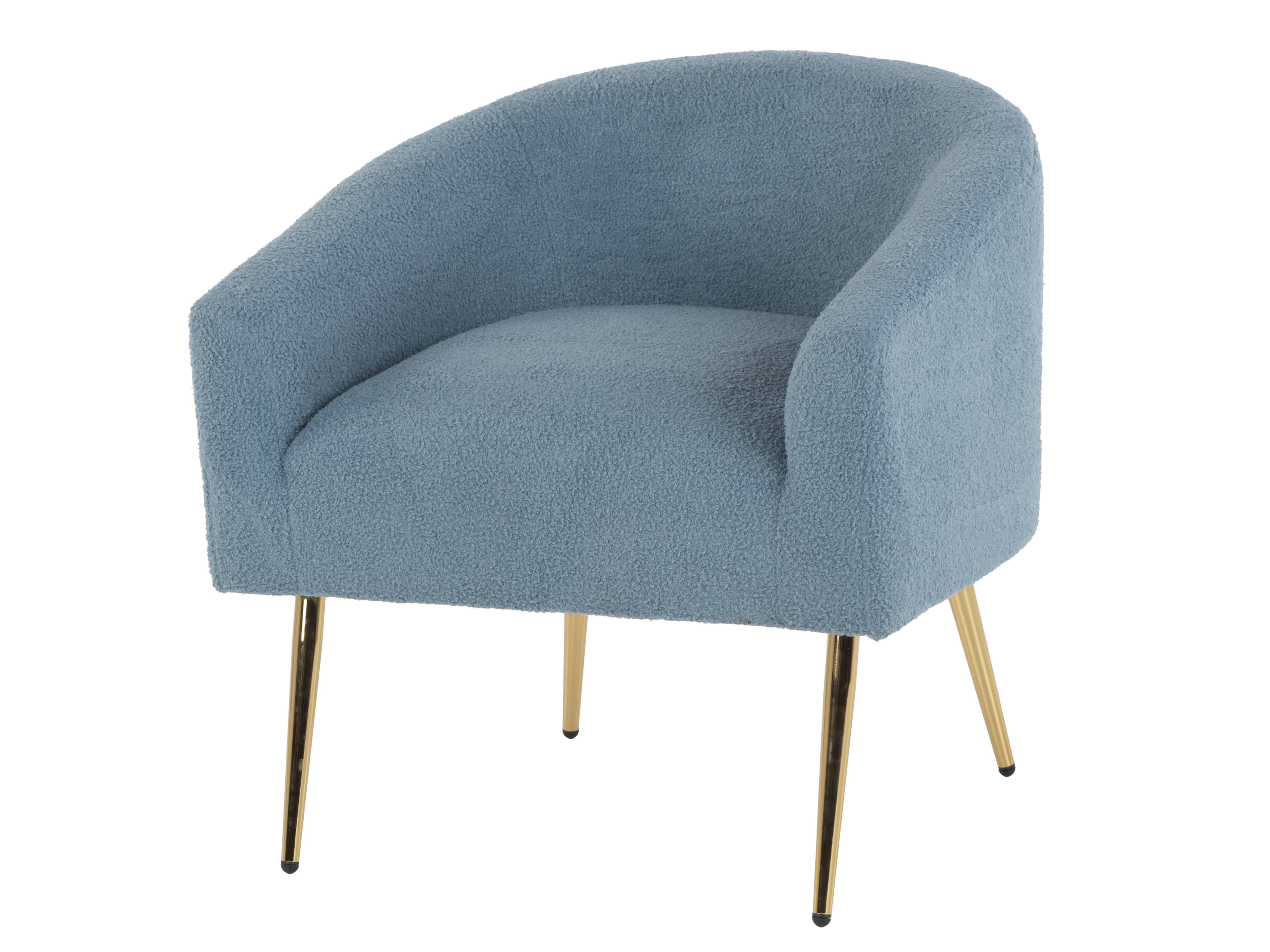 Blue Boucle Barrel Accent Chair with Gold Metal Legs