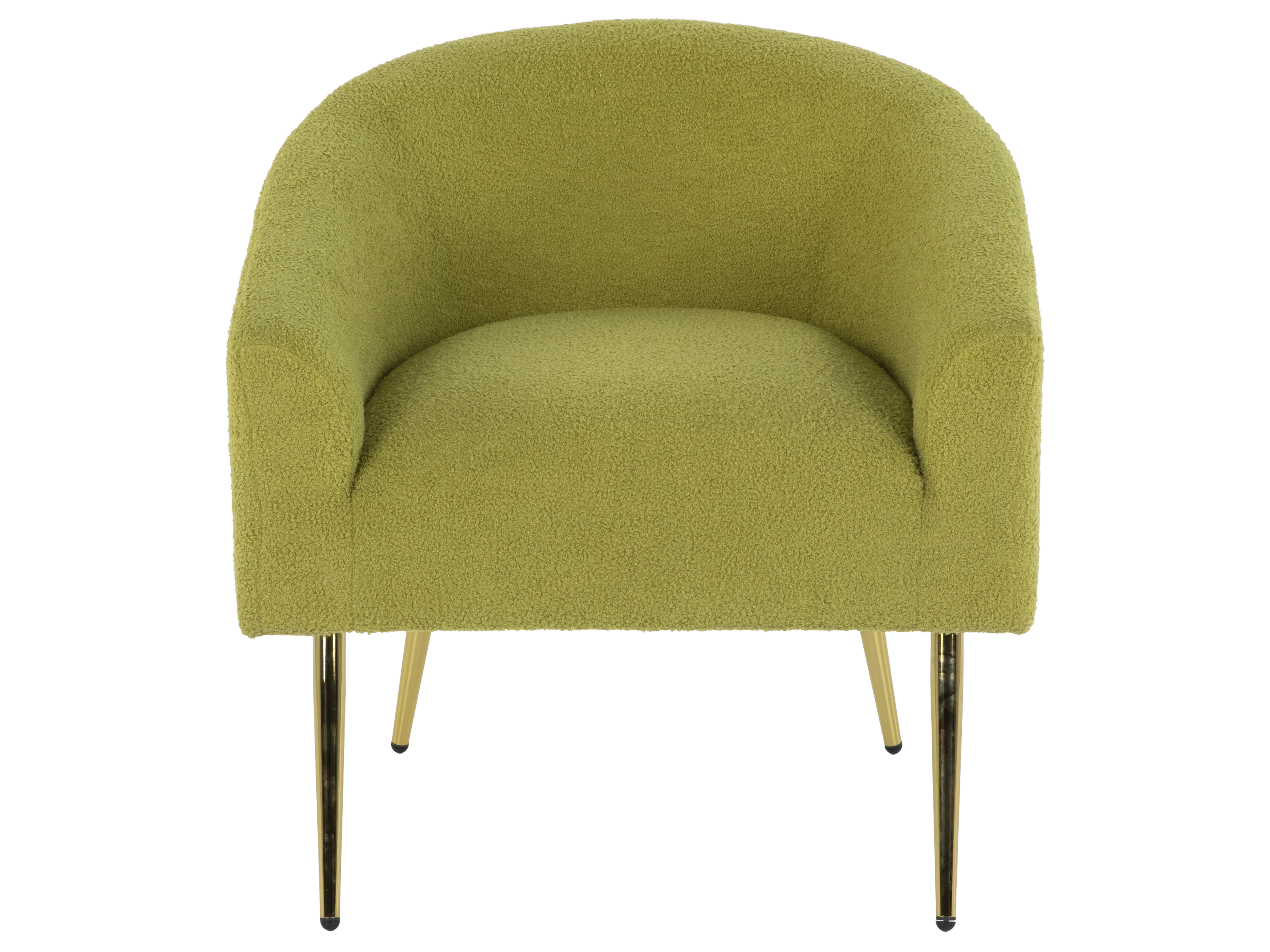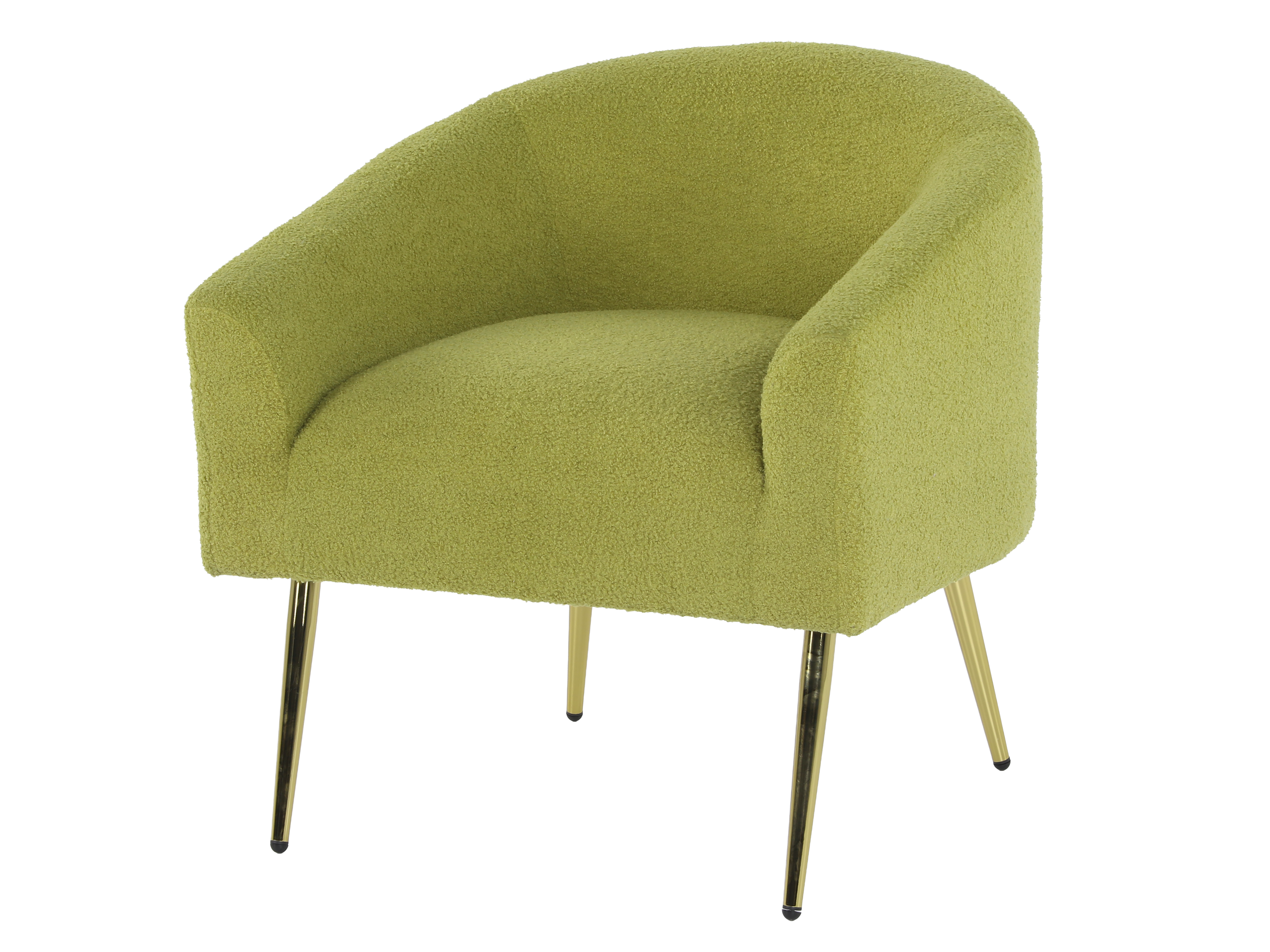 Brighten up your living area with this Light Green Boucle Accent Chair. The fresh green upholstery paired with the rounded barrel back and gold metal legs creates a contemporary and inviting seating option. Ideal for accenting your living room or bedroom with a touch of modern color.