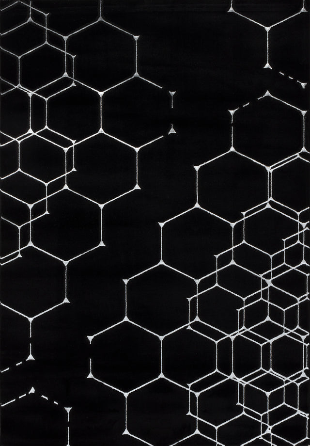 Elevate your décor with the Hive rug in Black/White. This 6' 6" x 9' 0" rug features the D49C pattern, expertly crafted in Turkey with easy-care, durable construction. Low Maintenance. Made In Turkey Power Loomed 60% Polypropylene, 40% Polyester Ideal for living rooms, bedrooms, and dining areas.