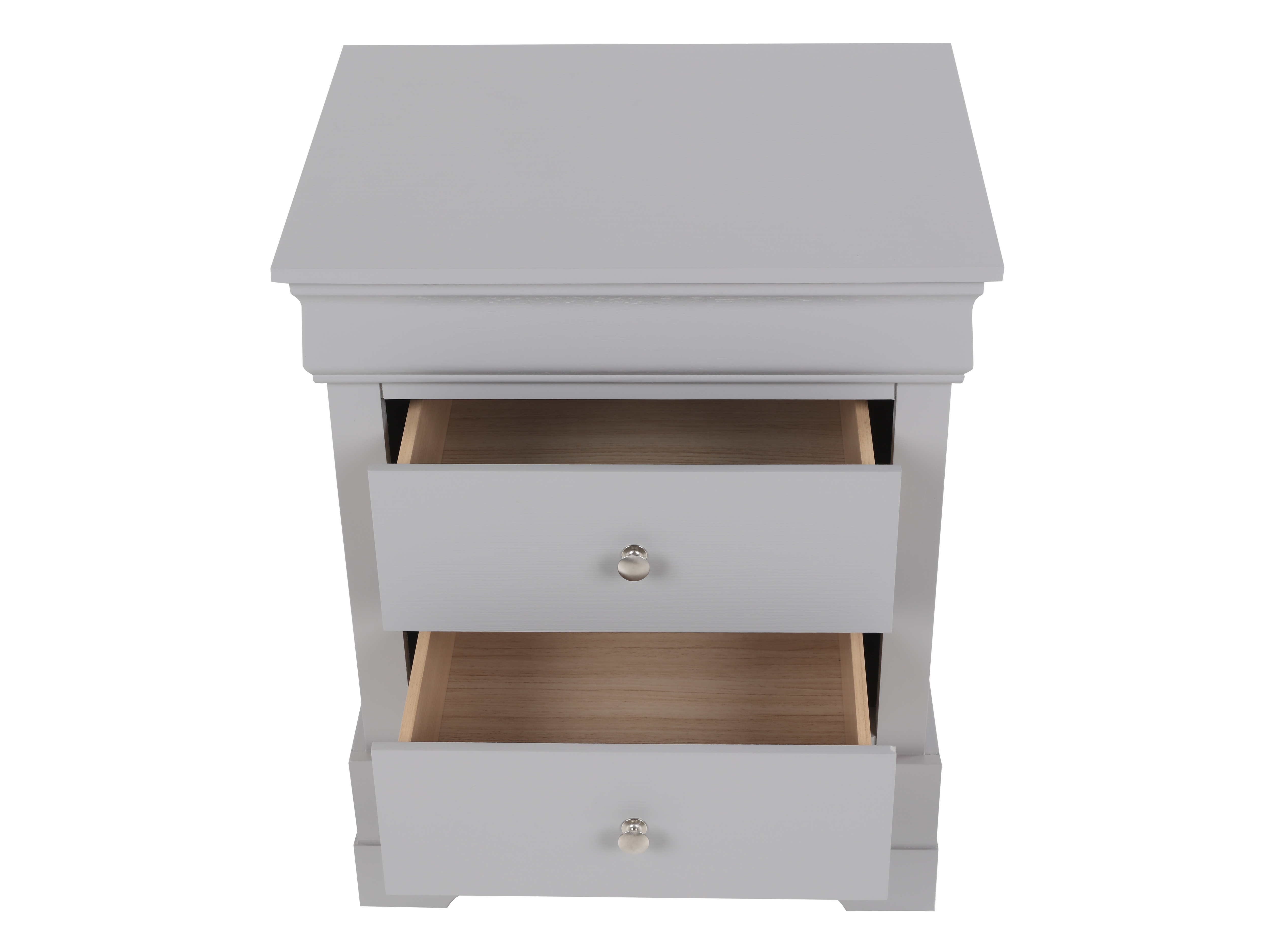 • Nightstand: Includes two drawers and a surface perfect for a lamp, framed pictures, or other bedside essentials.