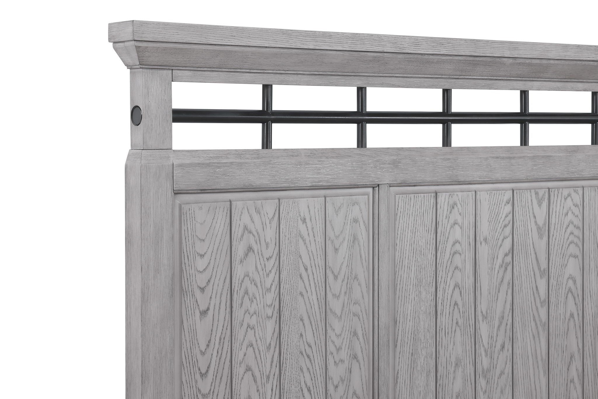 This bedroom suite offers a refreshing take on rustic charm, featuring a soft finish that highlights the natural wood grain. The sturdy bed stands as the centerpiece with its robust headboard and inviting design, while the accompanying pieces — a nightstand, dresser, and chest — provide ample storage, each fitted with understated hardware that accentuates the collection's country-inspired look.