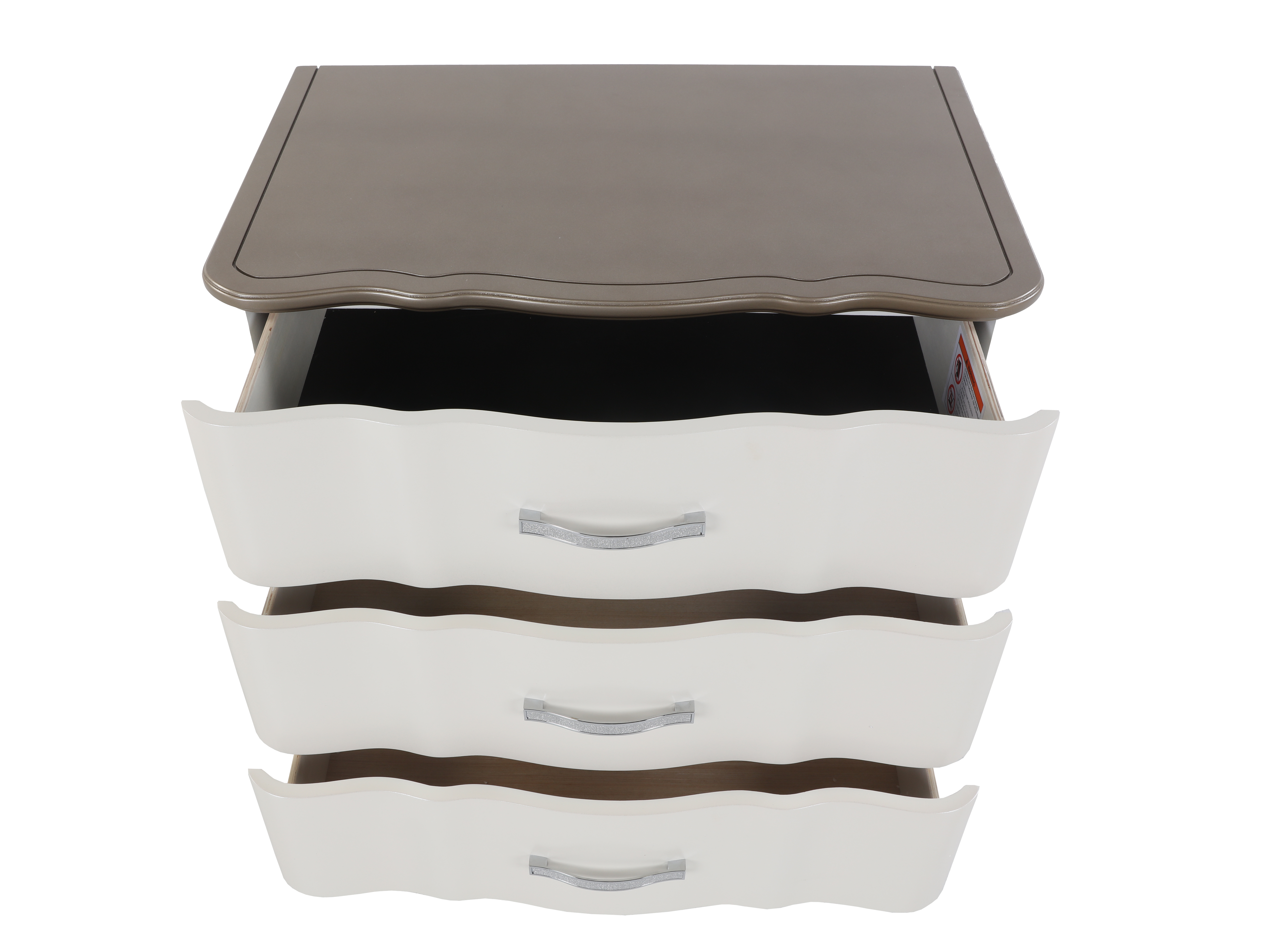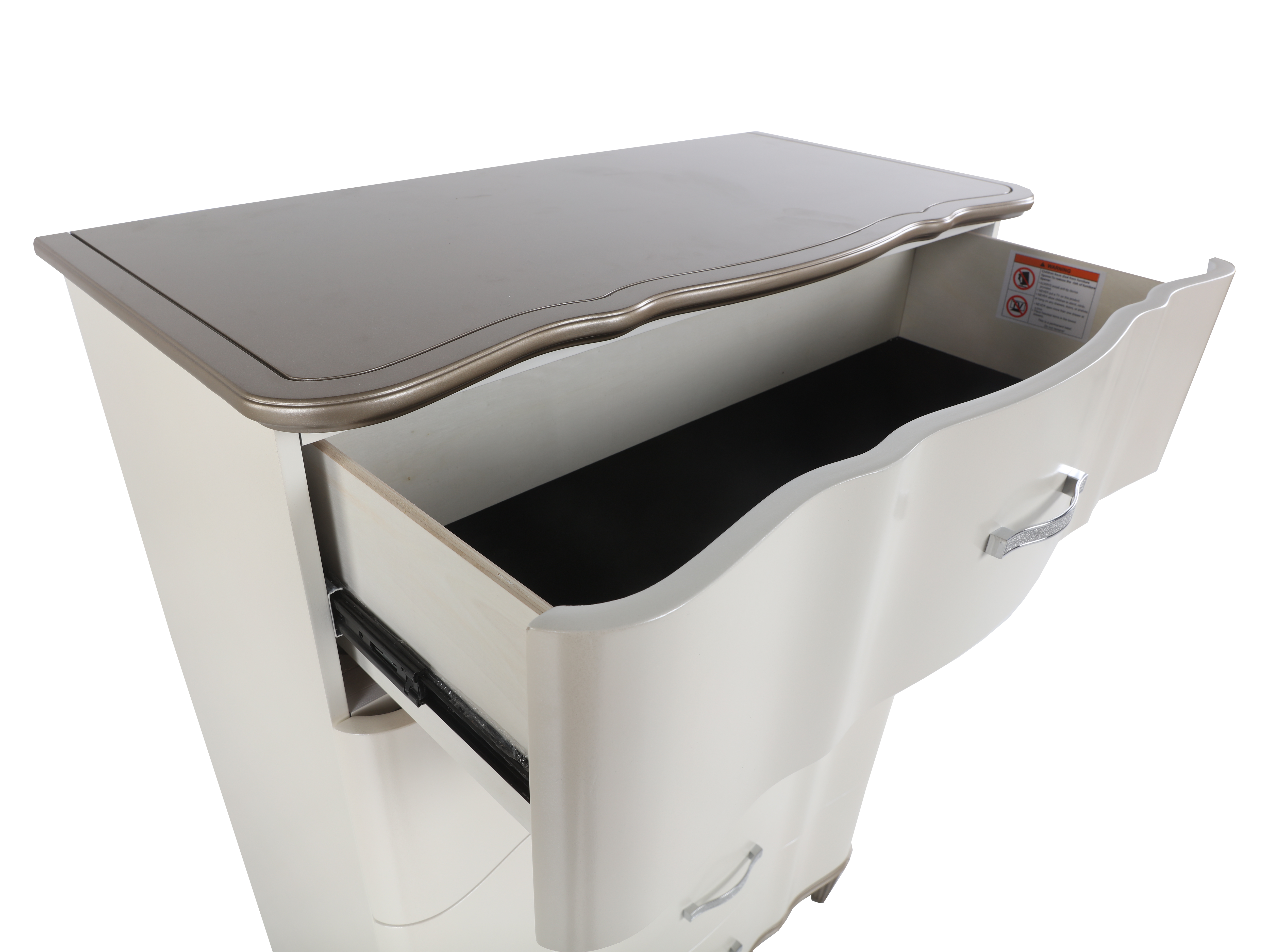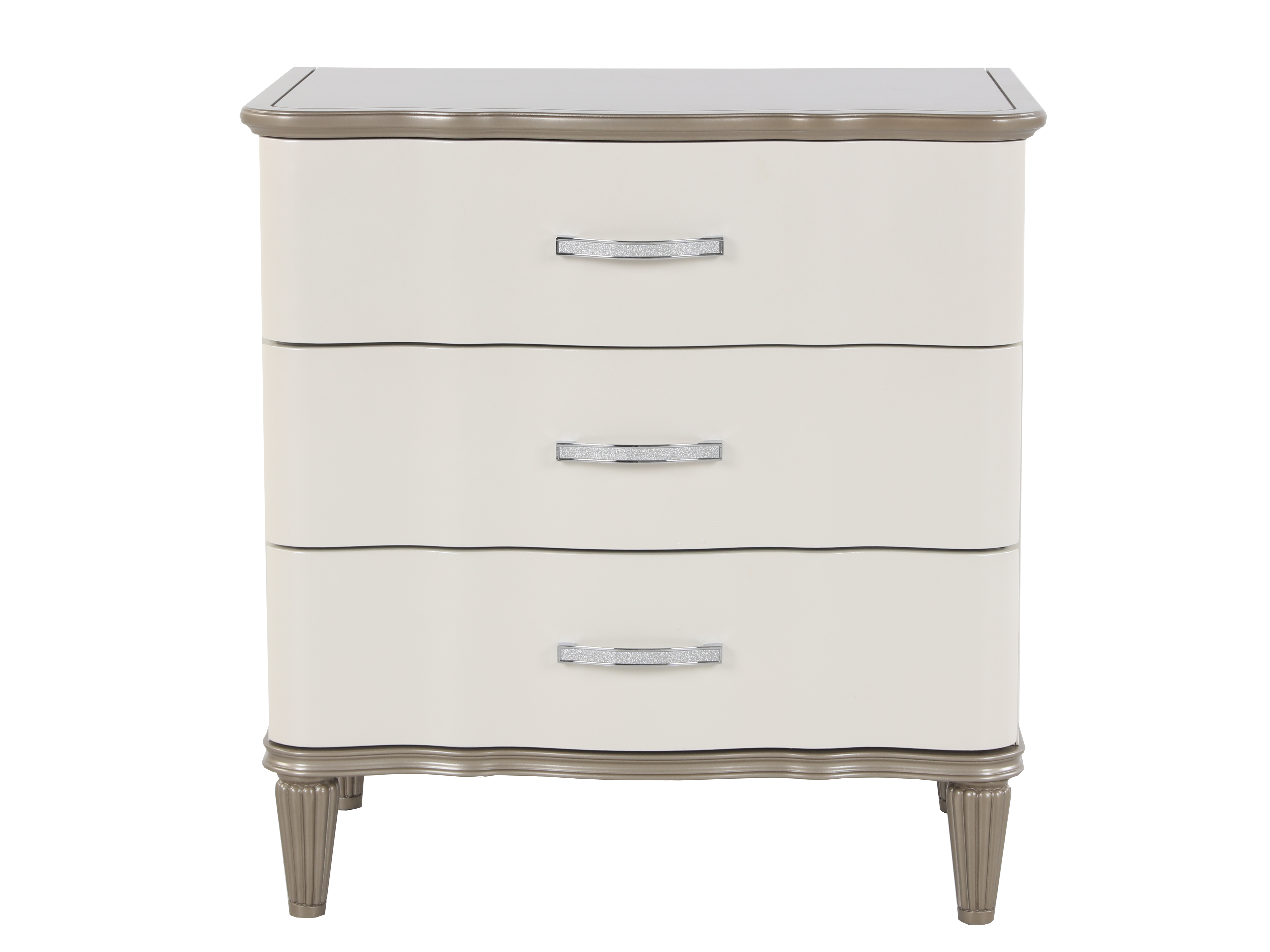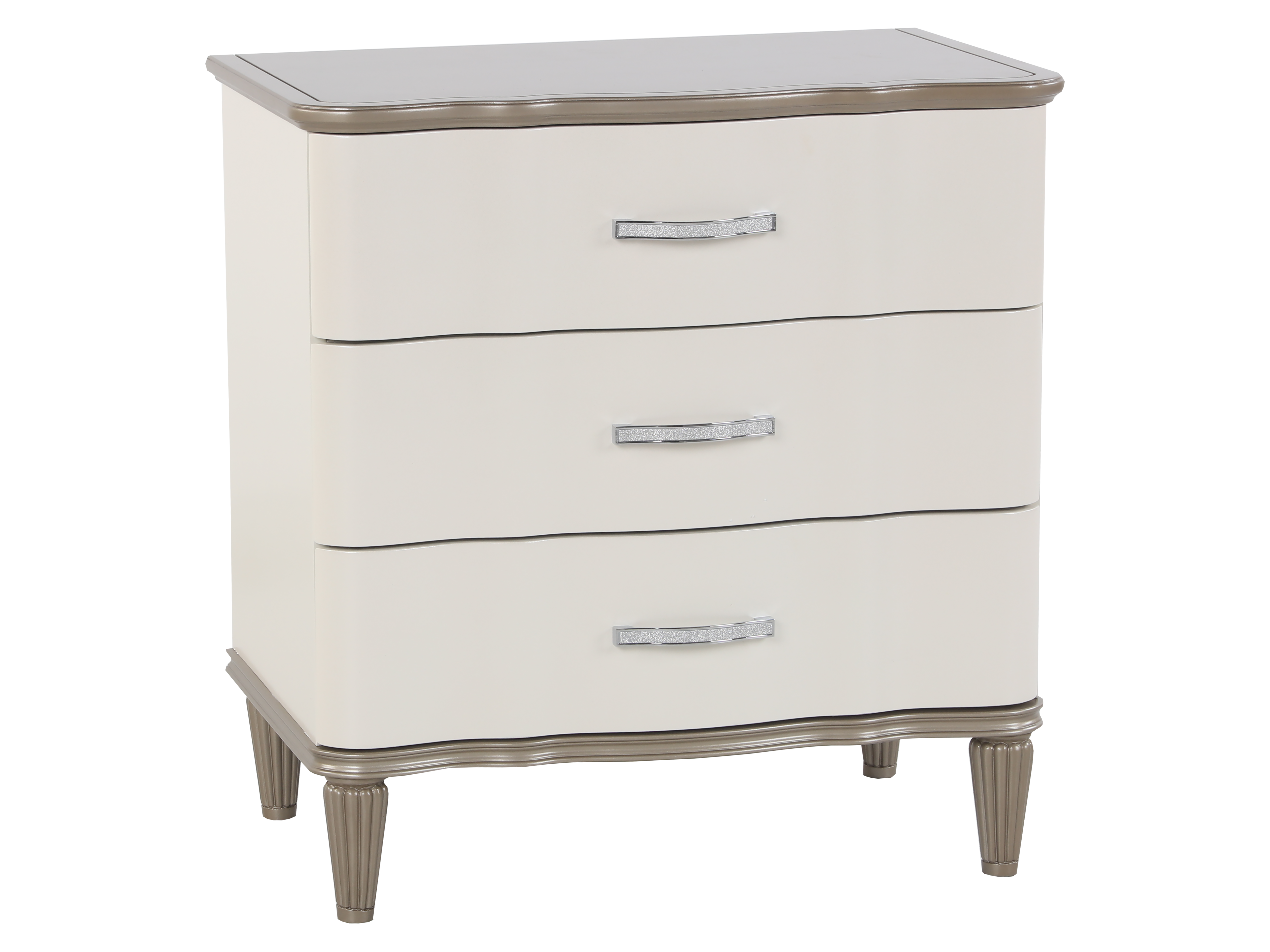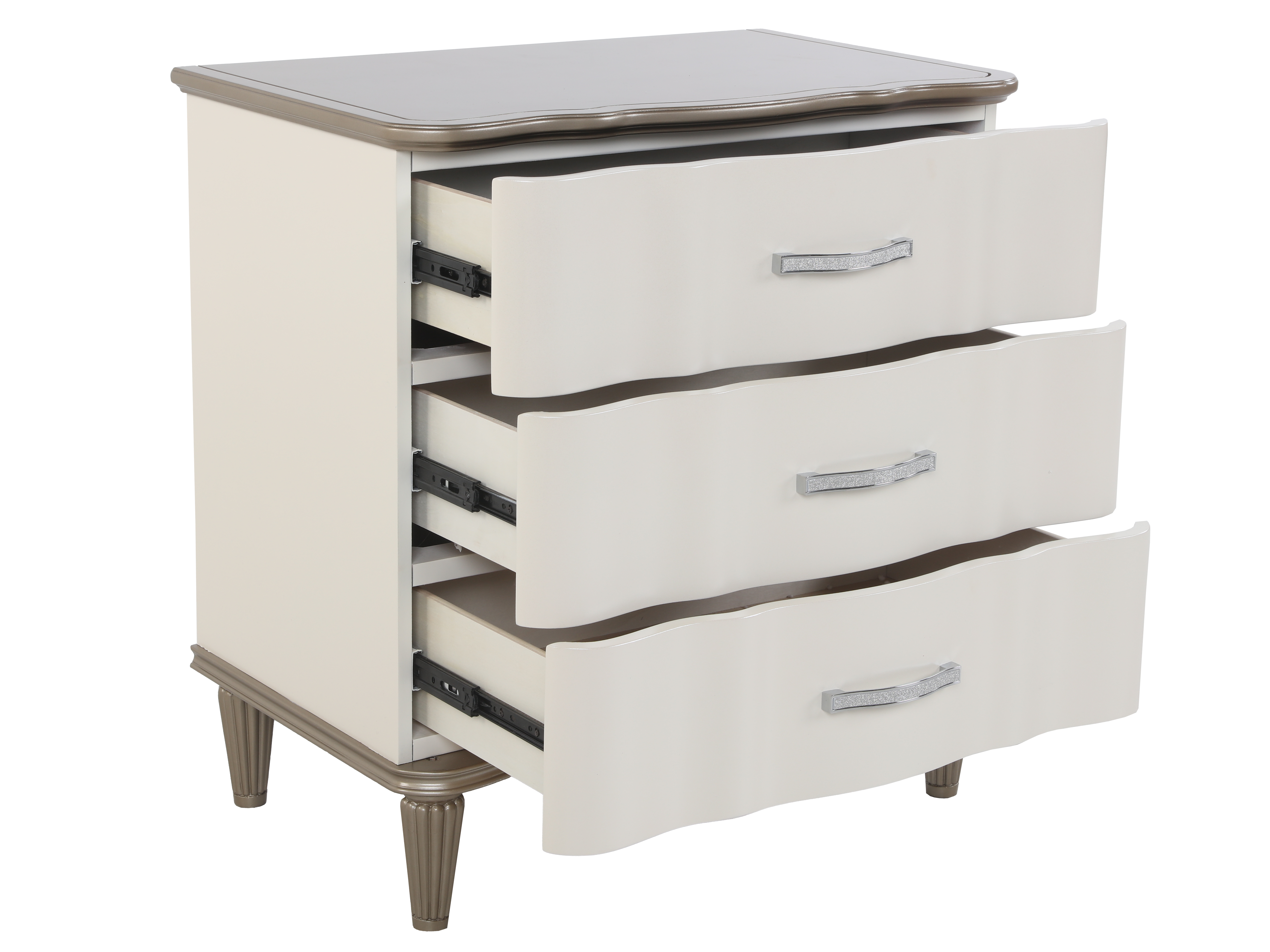 - Nightstand – A 3-drawer nightstand, providing convenient bedside storage with sleek gold-finished handles.
