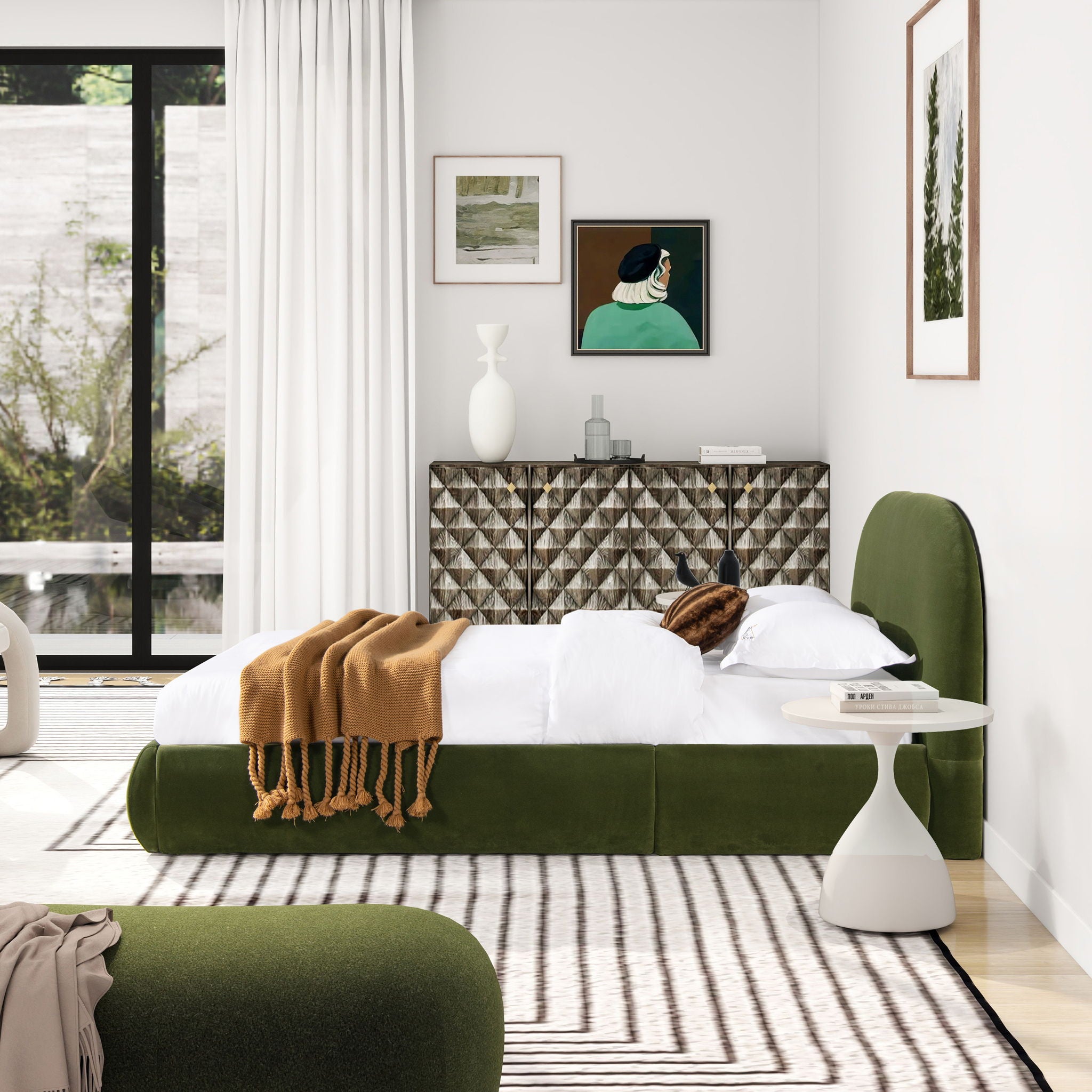 Archie - Queen Puffy Grounded Upholstered Platform Bed - Olive Green
