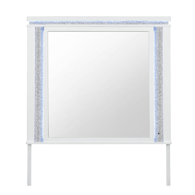 Adalid - Square Shaped Mirror With LED Lighting And Glittered Detailing - White