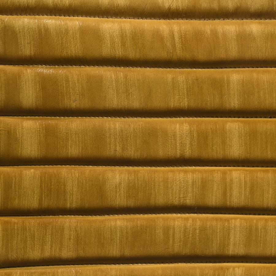 - The foam-filled bench cushion even lends a vintage, boho-chic charm with a hand dyed goat leather fabric in a warm camel of dark espresso hues and a channel tufted design