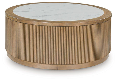 Camdill - Round Cocktail Table - Light Brown / White