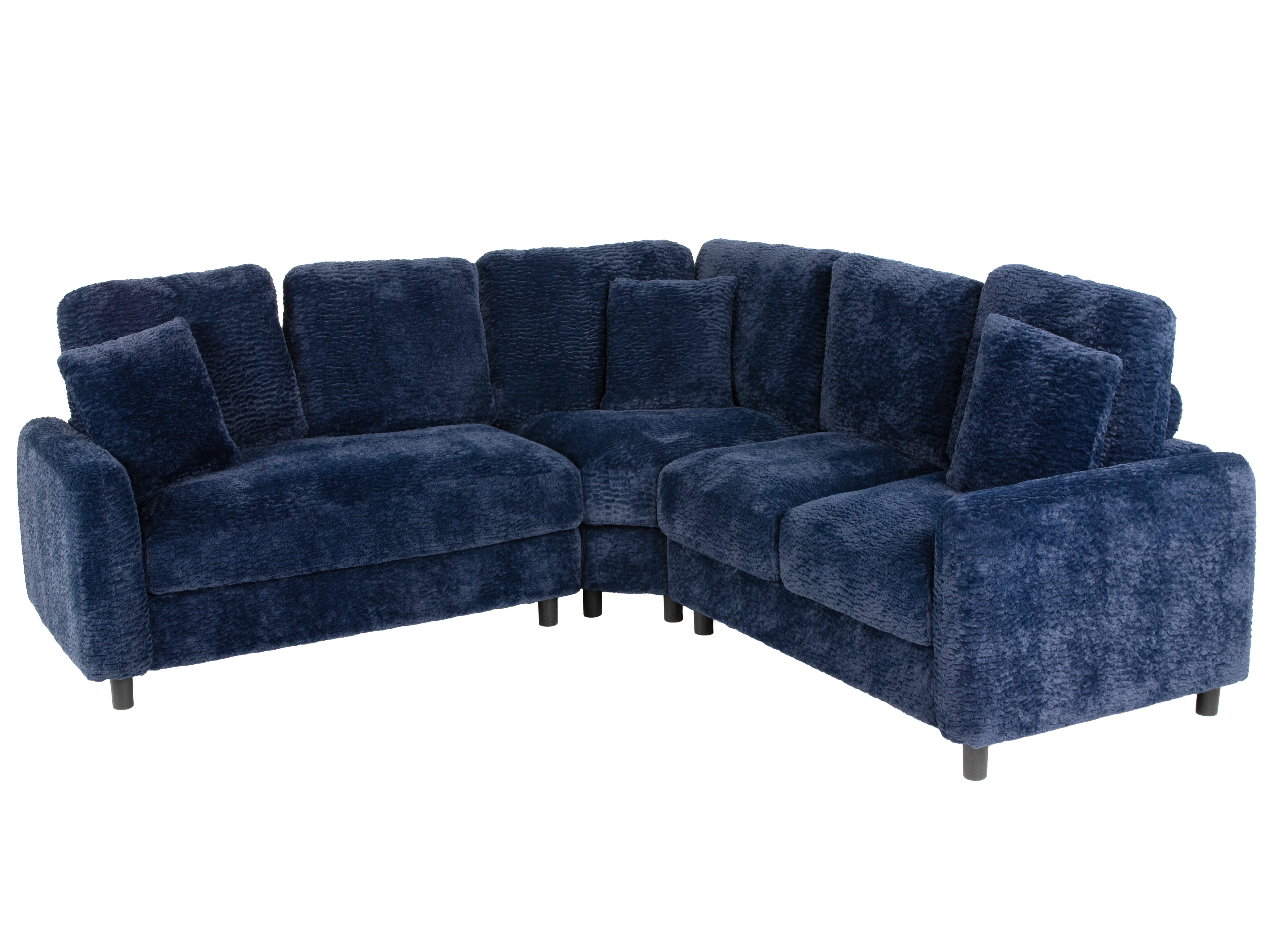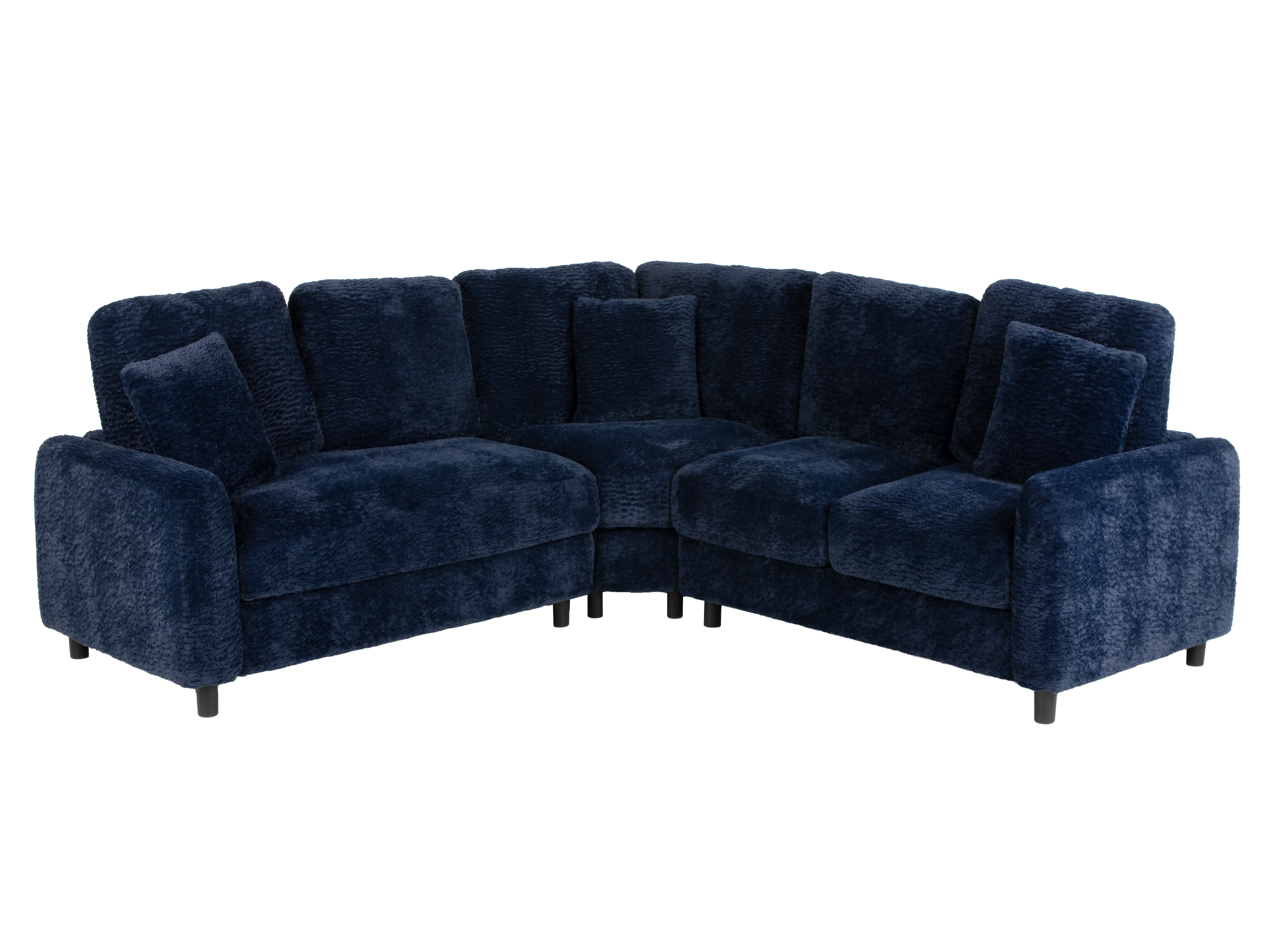 Navy Chenille 3-Piece Sectional Sofa with Pillows