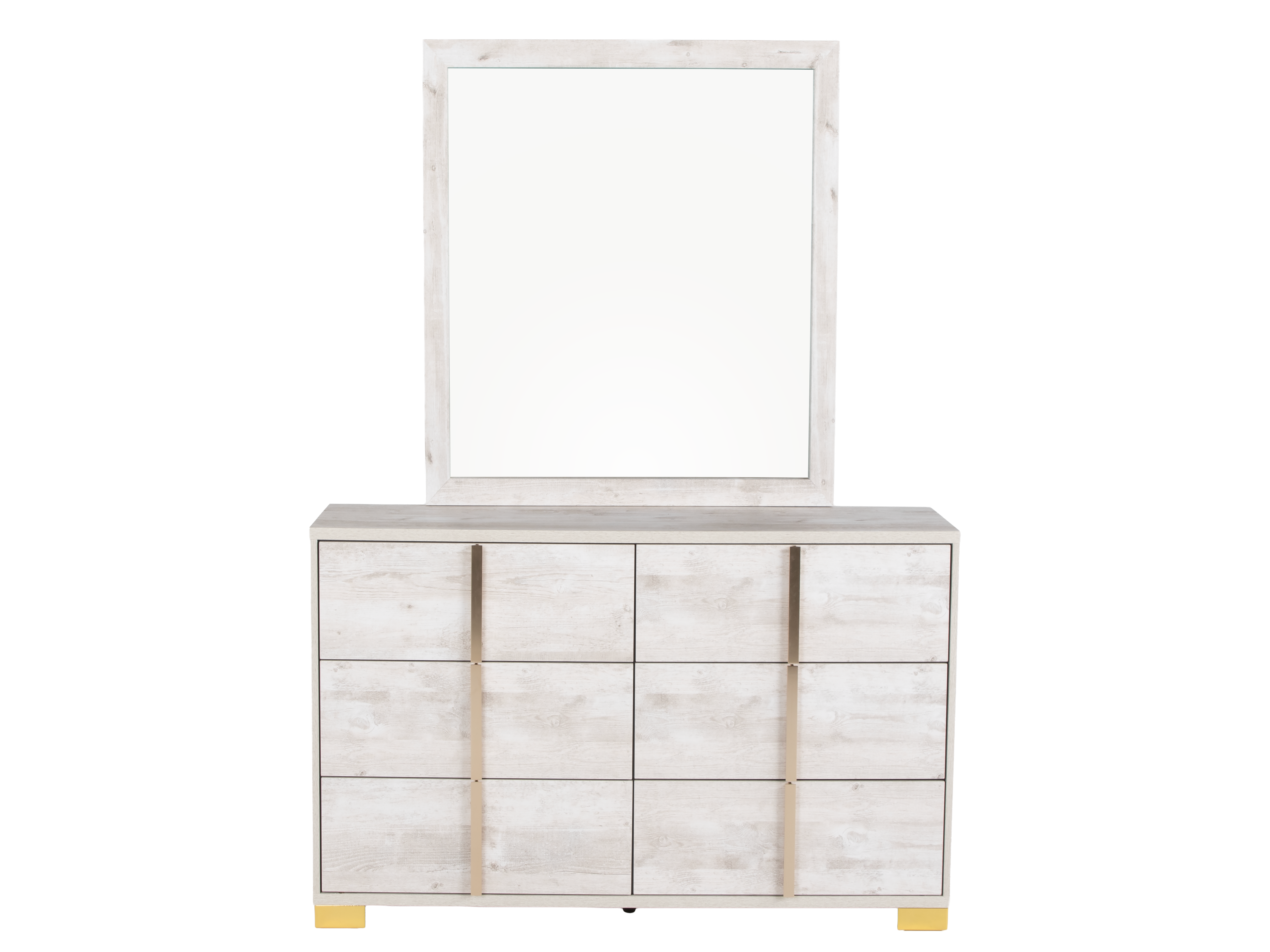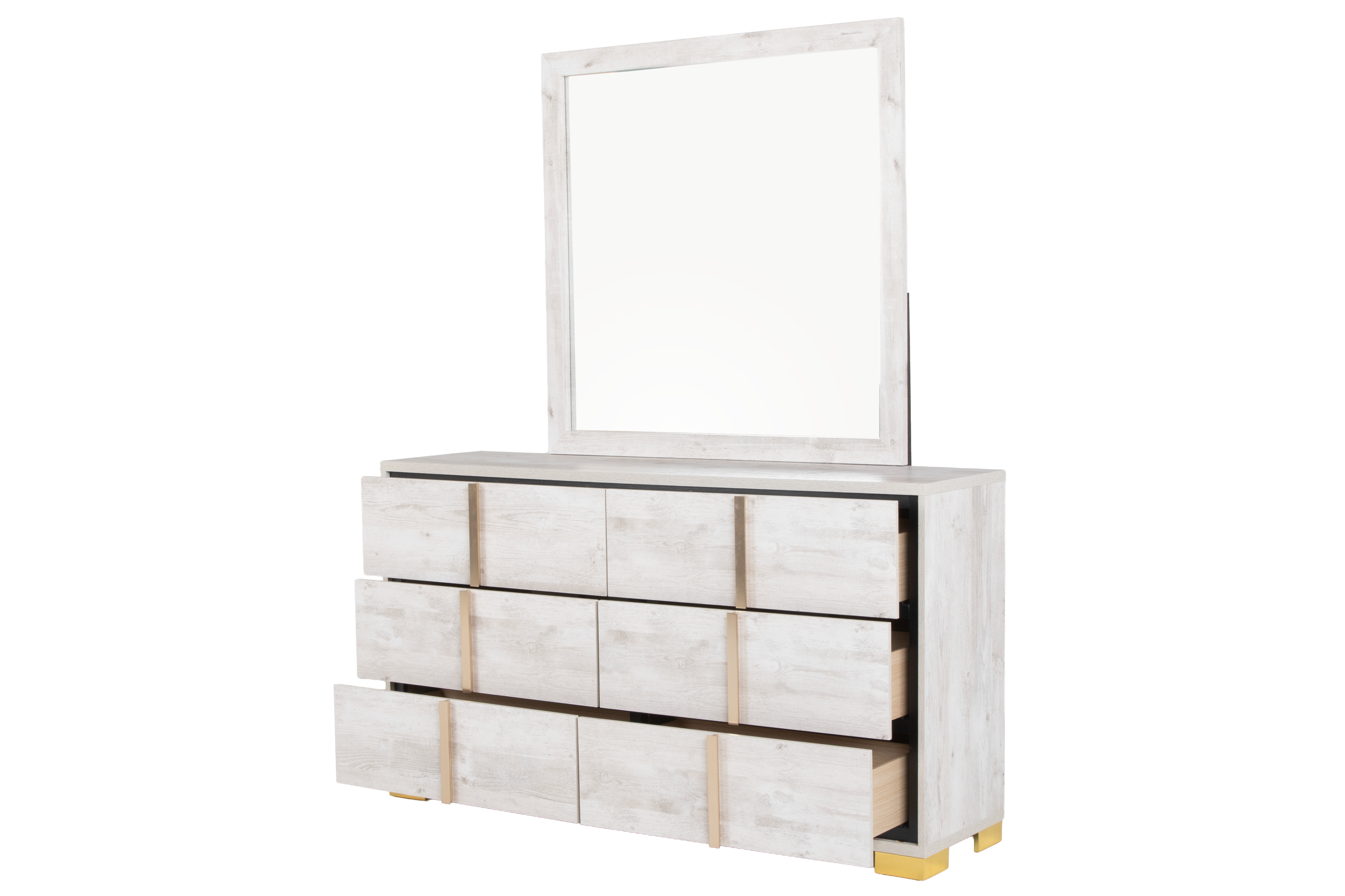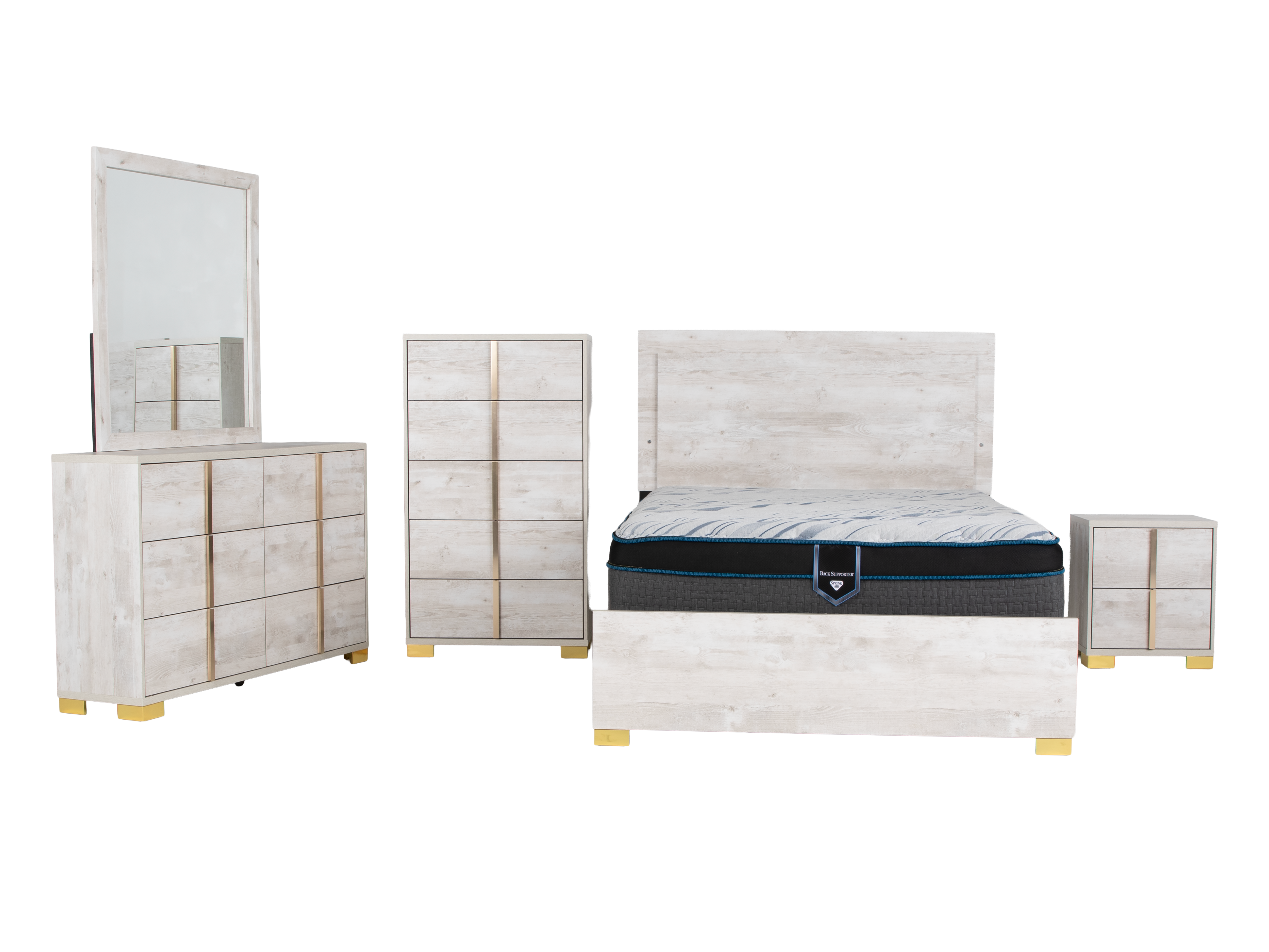 White Oak Modern 6-Piece Queen Bedroom Set (Bed, Dresser, Mirror & Nightstand)