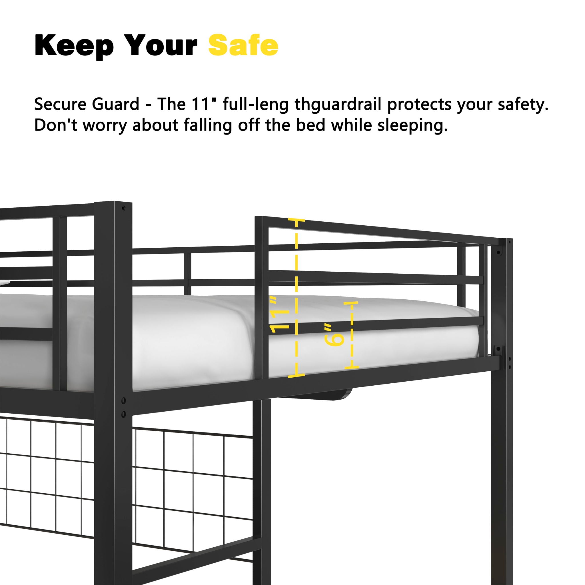 - [Flexible Ladder]: This Full/Twin metal bunk bed, designed for versatility, features ladders on both sides to fit various room layouts. A convenient ladder makes it easy for children to climb up and down.