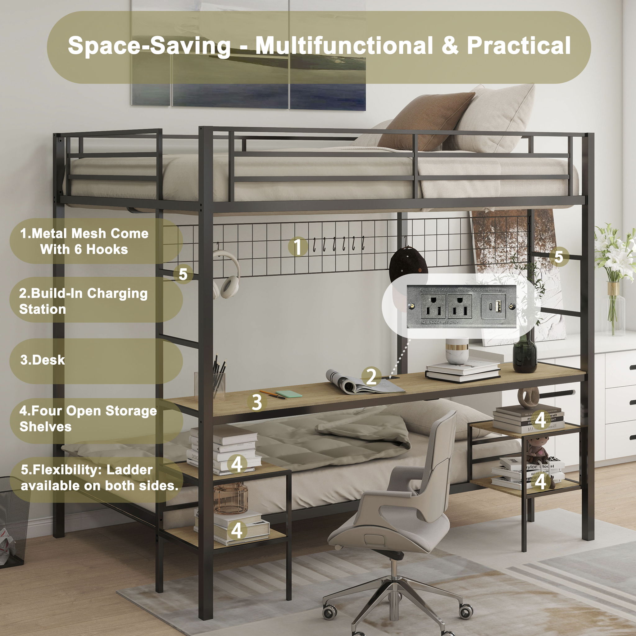 Ethan - Bunk Bed With Desk, Charging Station, Storage Shelves
