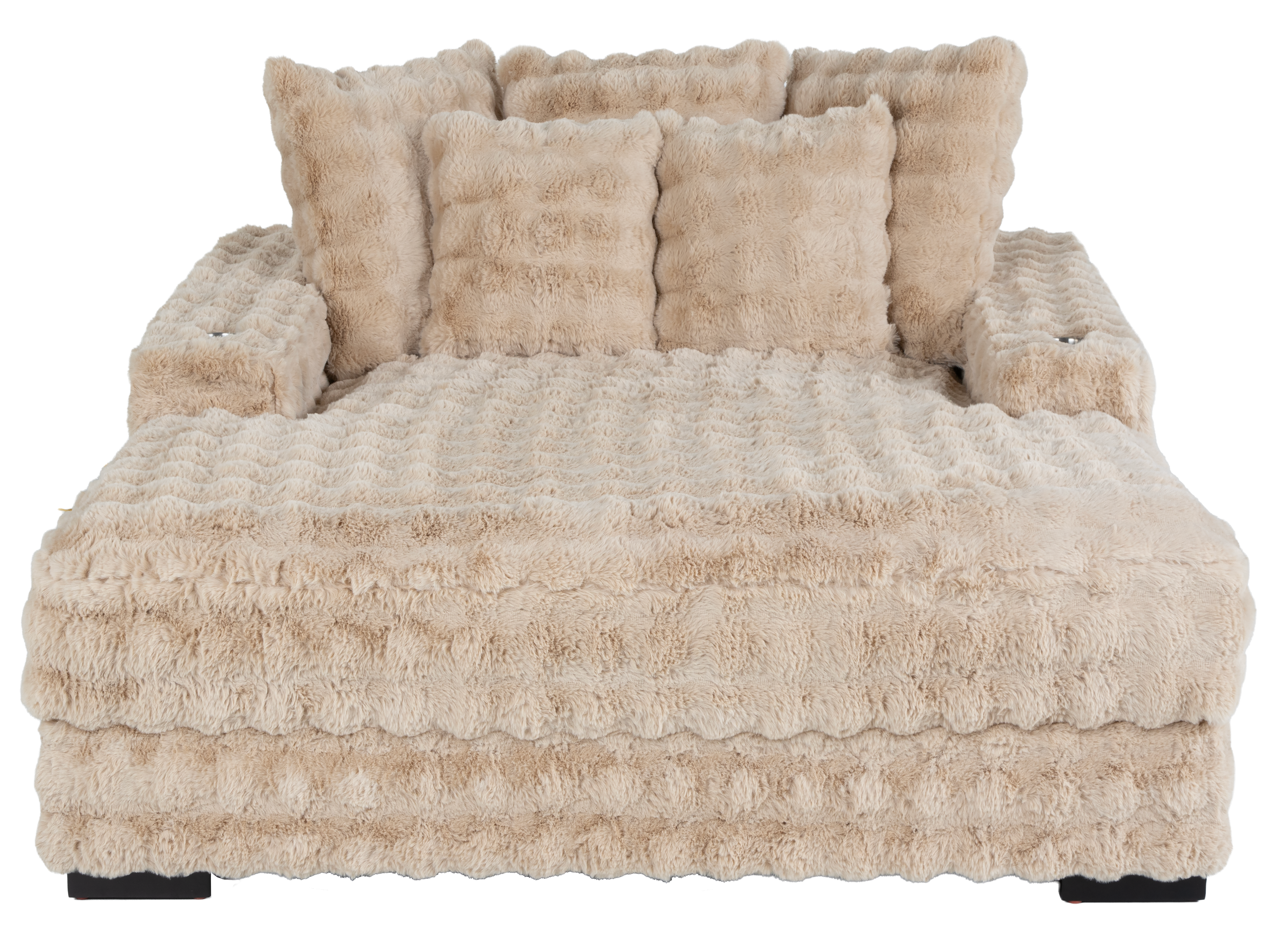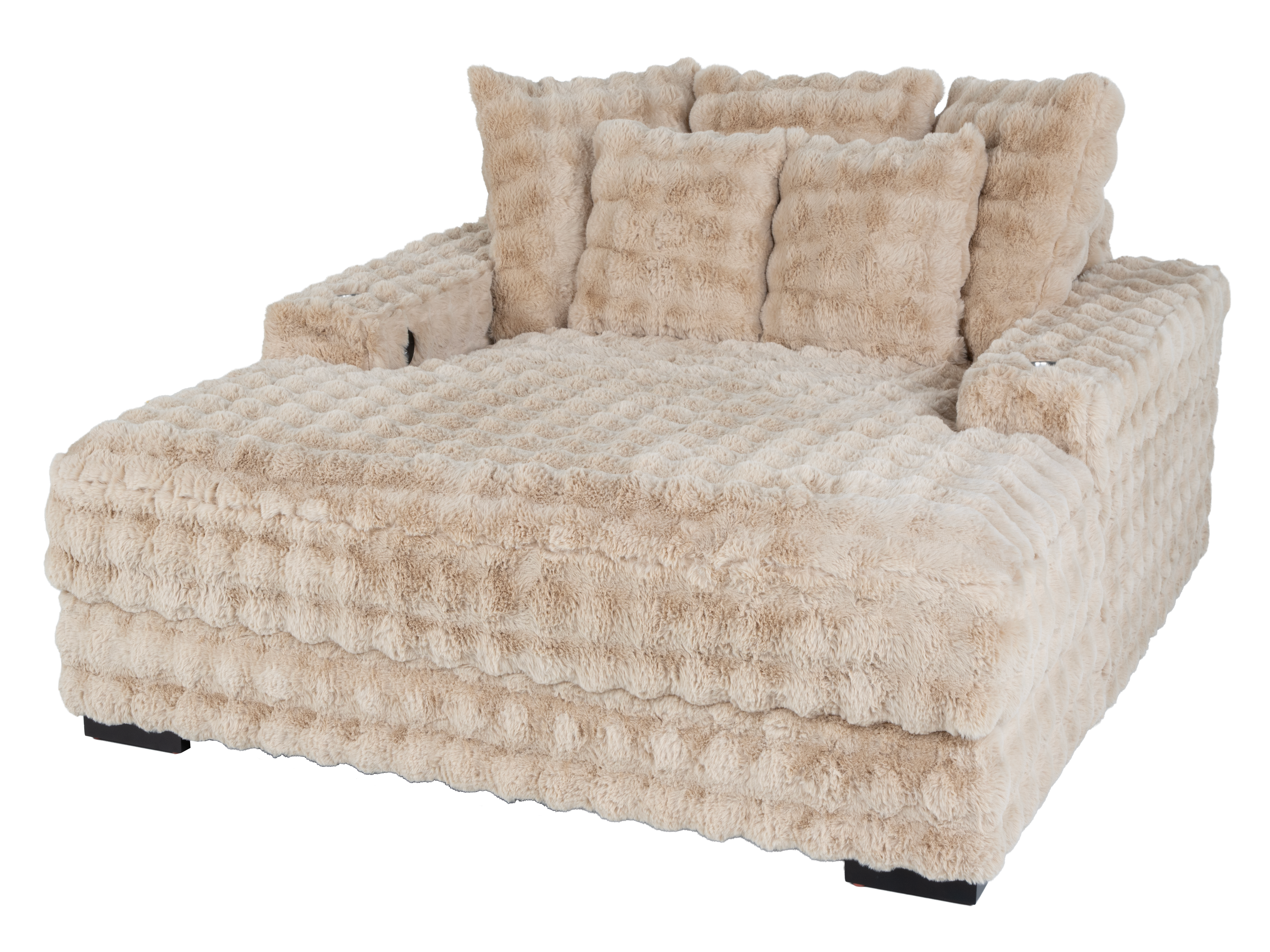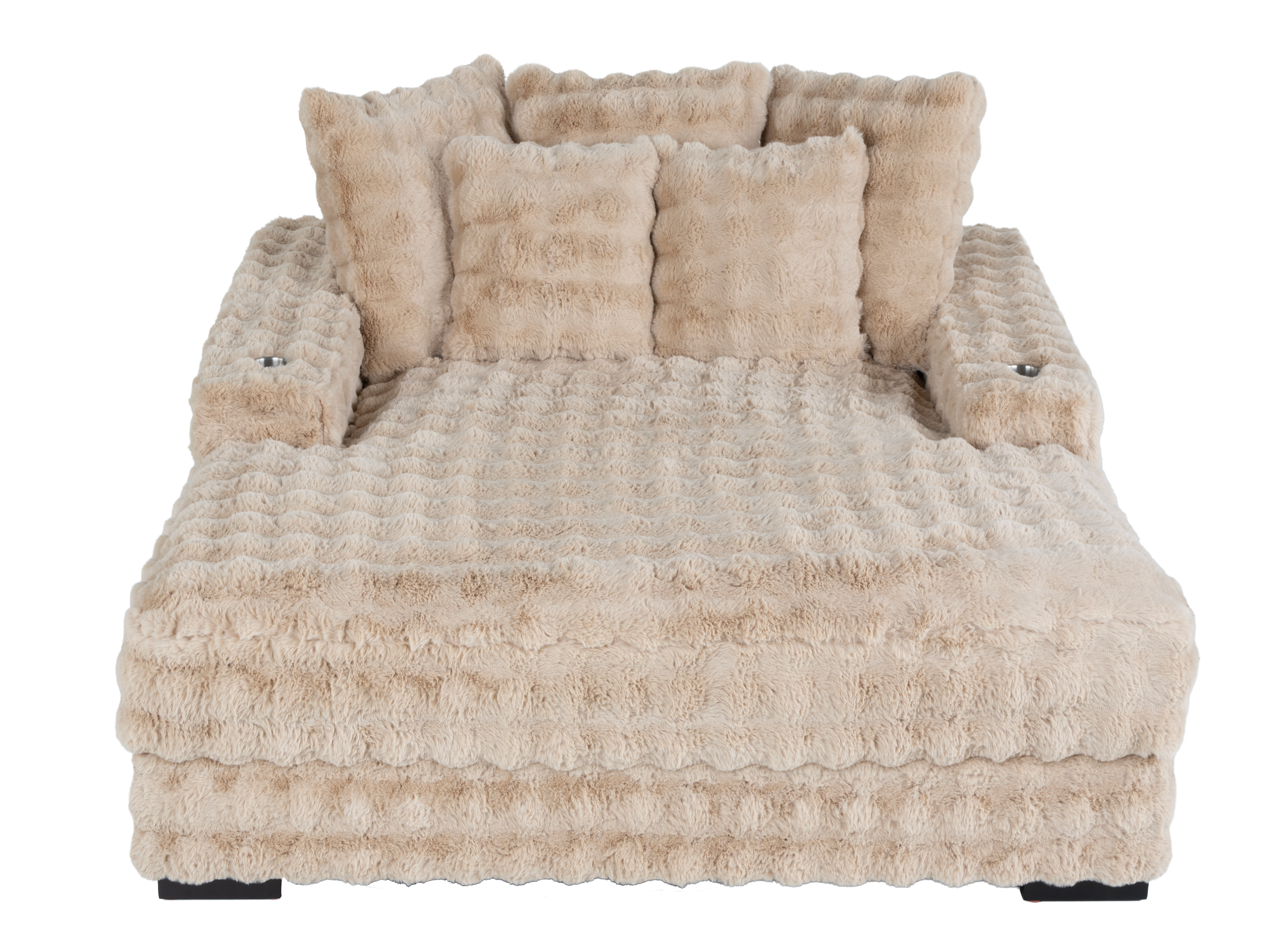Camel Velvet Chaise Lounge with Dual Cupholders & USB Charging Ports