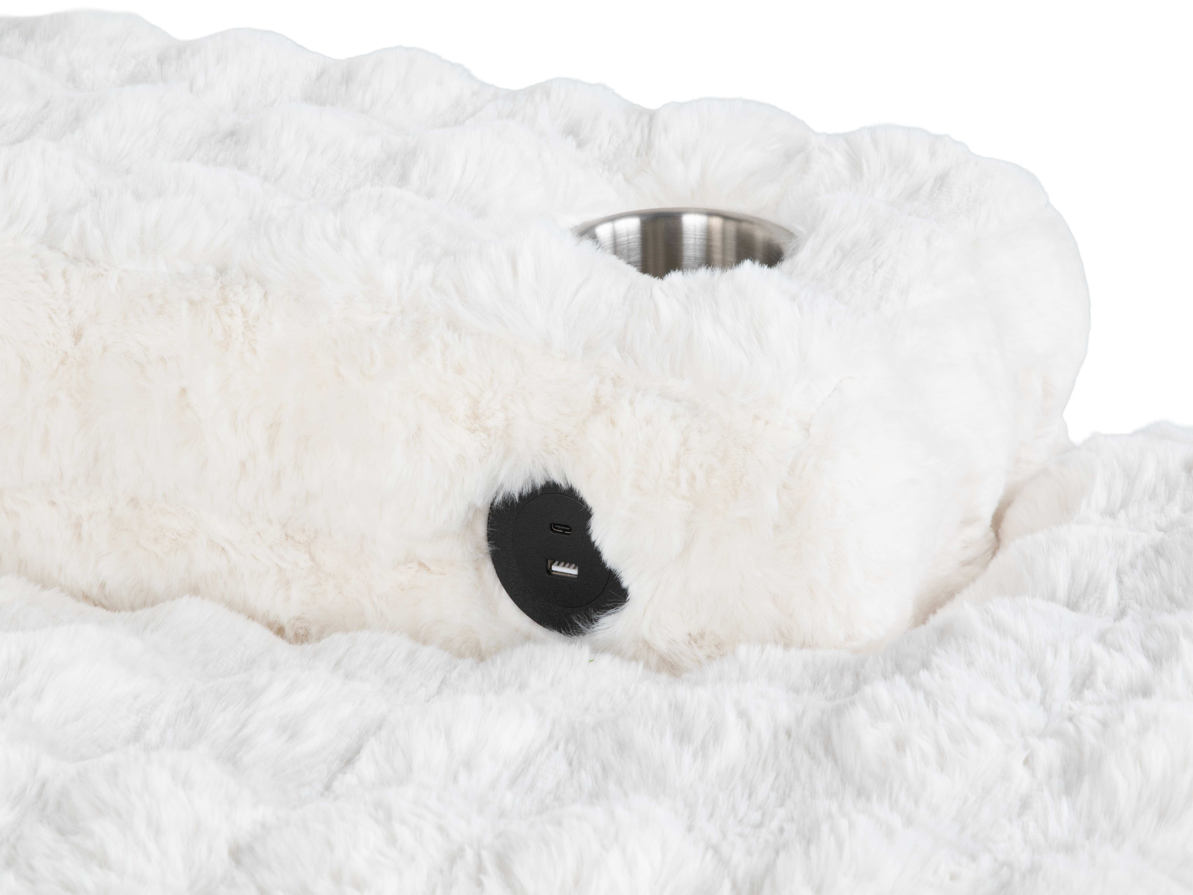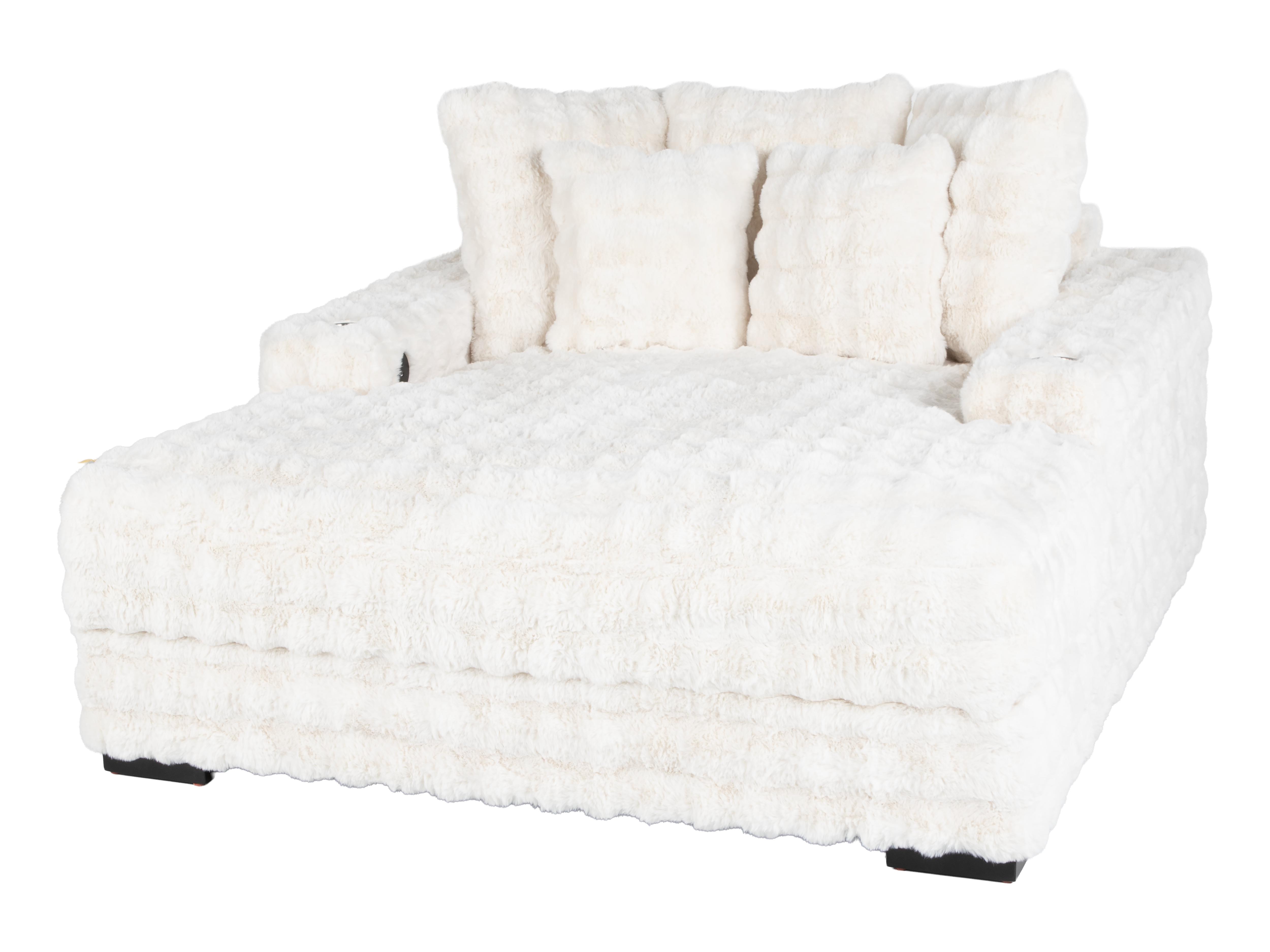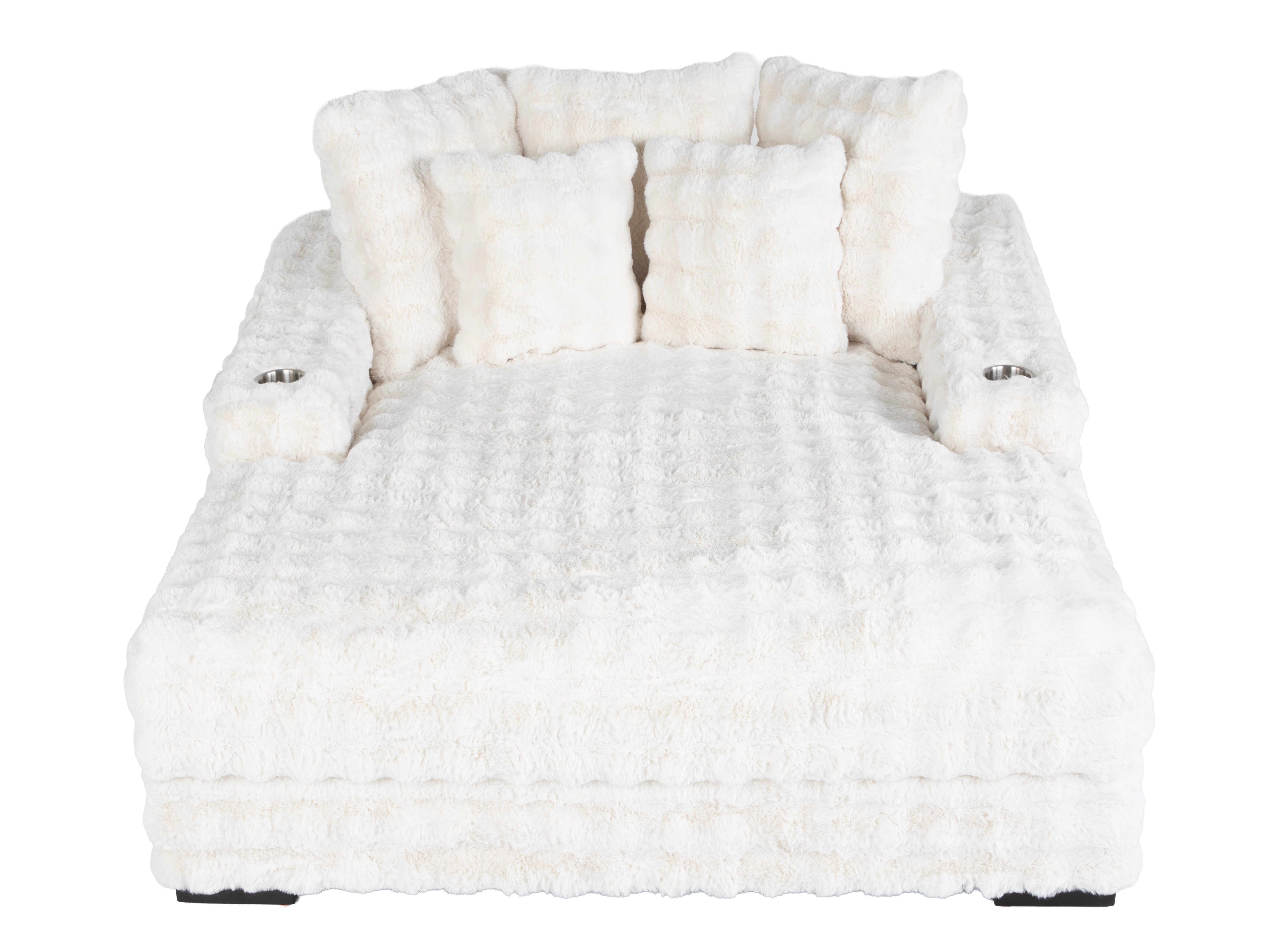 Indulge in cloud-like comfort and modern functionality with the Cream Velvet Chaise Lounge with Dual Cupholders & USB Charging Ports. Upholstered in soft, textured velvet made of 100% polyester, this luxurious chaise features deep seating with pocket-coil cushioning for exceptional support and plush relaxation.