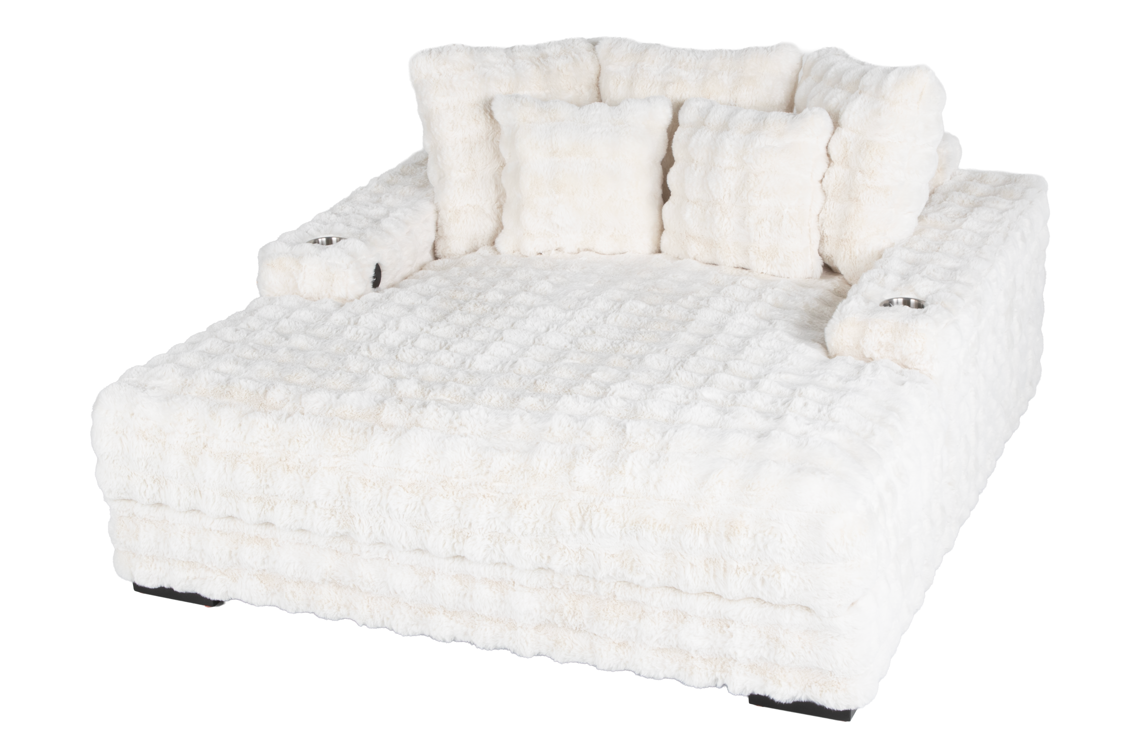 Its oversized design makes it perfect for lounging, reading, or napping, while two built-in USB ports (USB-A & USB-C) keep your devices charged within reach. The dual stainless-steel cupholders offer ultimate convenience for your favorite drinks, and three oversized backrest pillows plus two throw pillows complete the look with cozy elegance.