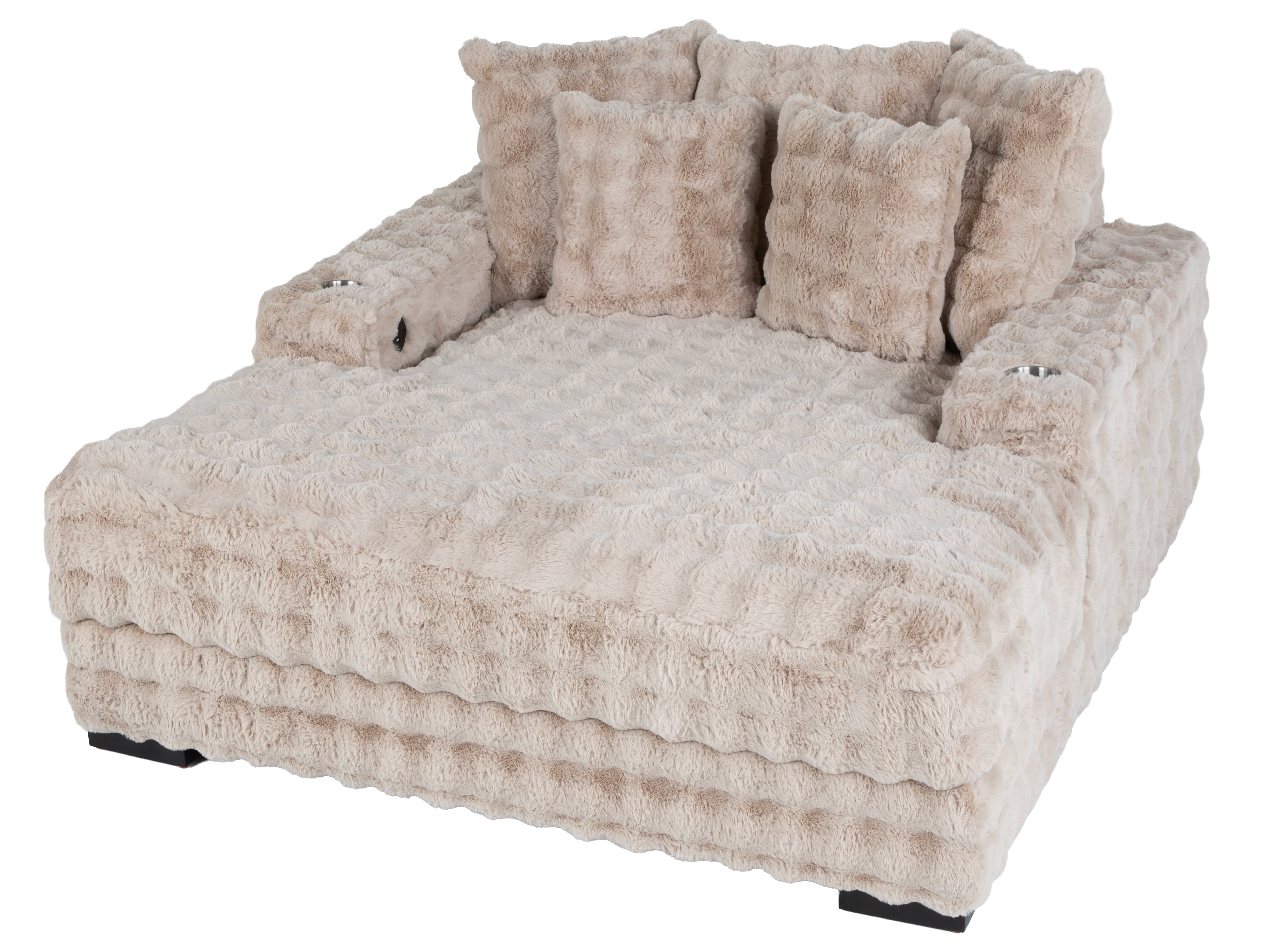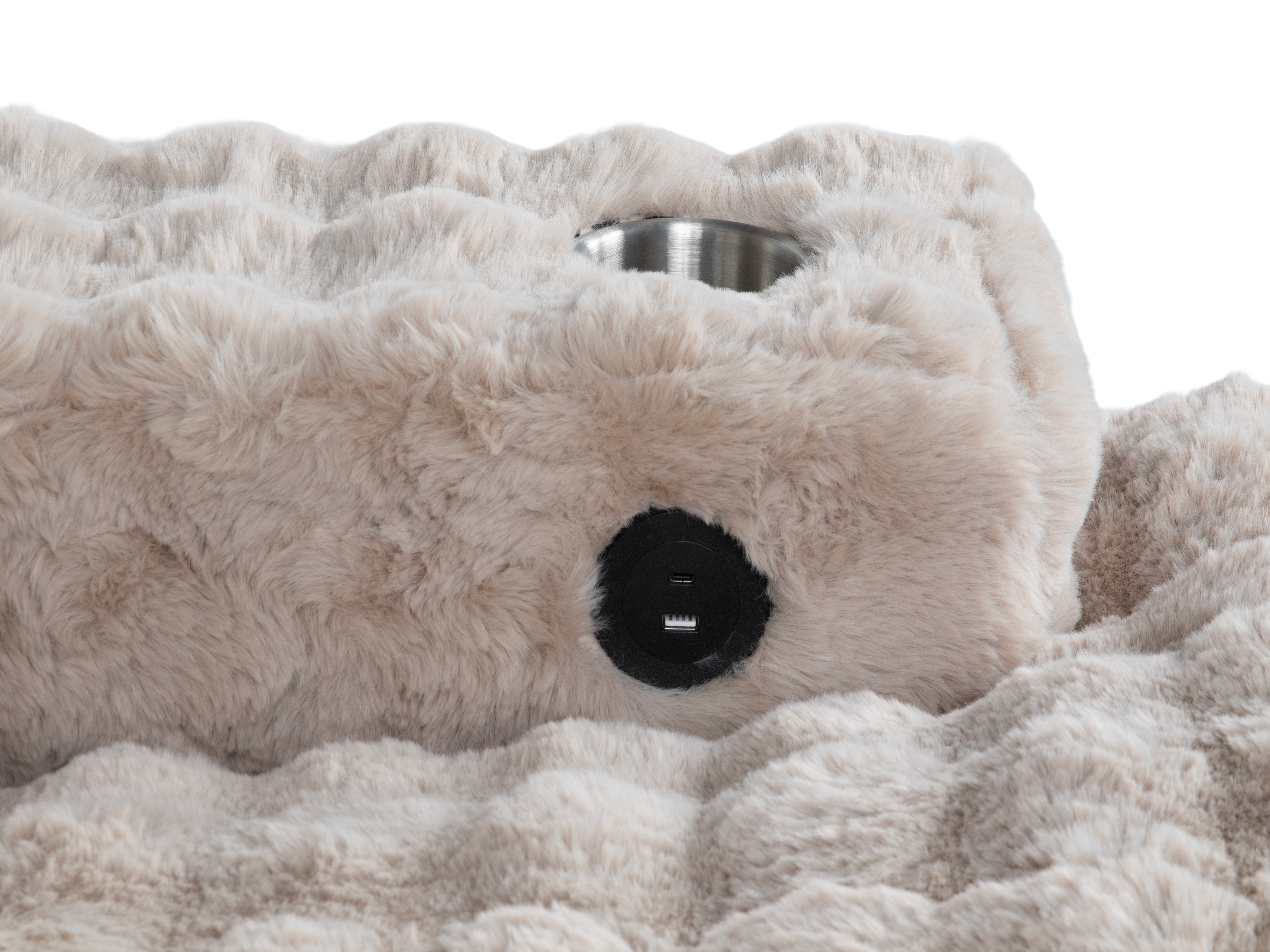 Beige Velvet Chaise Lounge with Dual Cupholders & USB Charging Ports