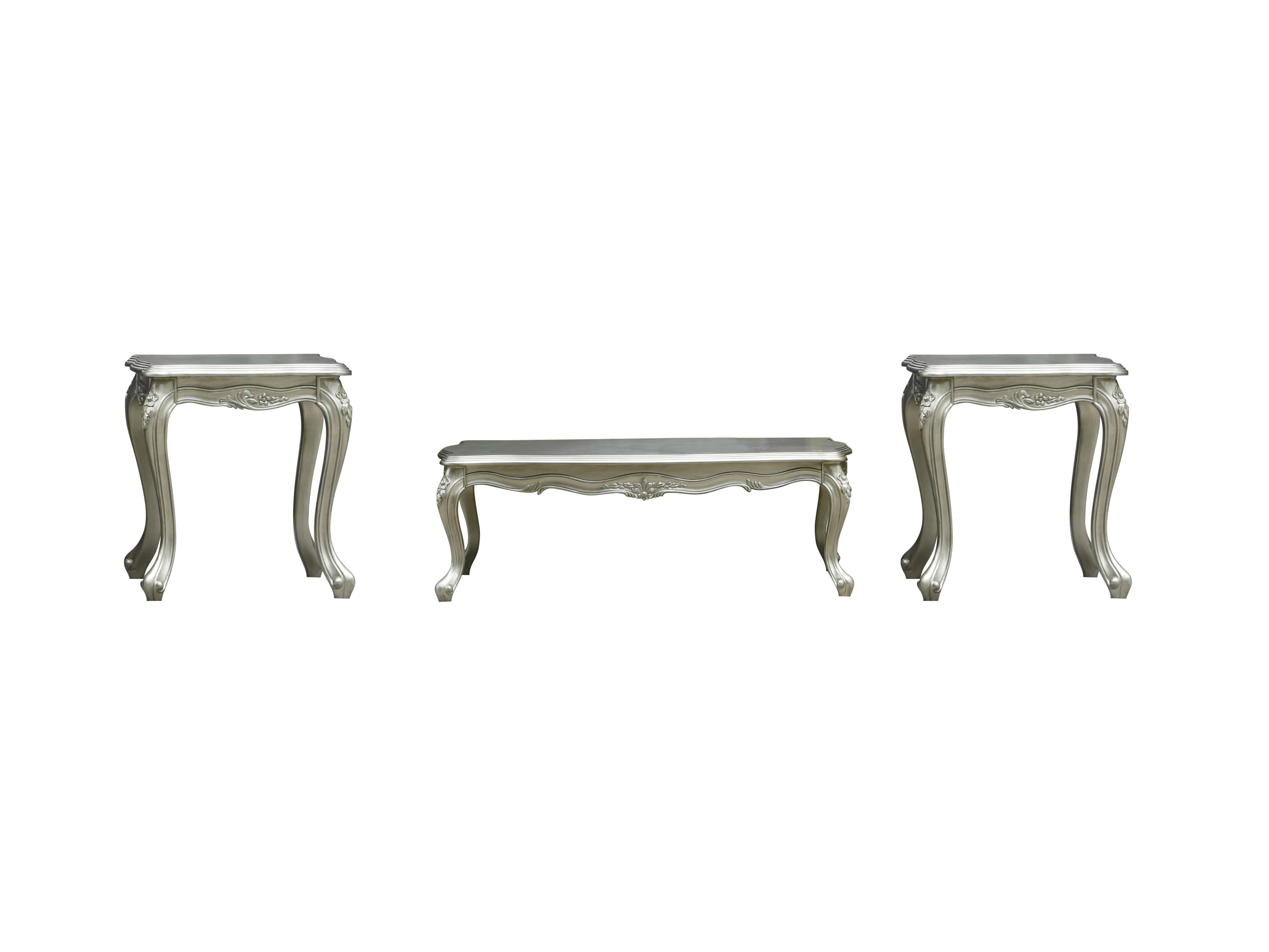 This 3 Piece Coffee Table Set brings a luxurious touch to your living room. Each piece features a unique art design with a golden wooden finish, ensuring that your home stands out from the rest. This set includes one coffee table and two end tables, perfect for displaying your favorite items.
