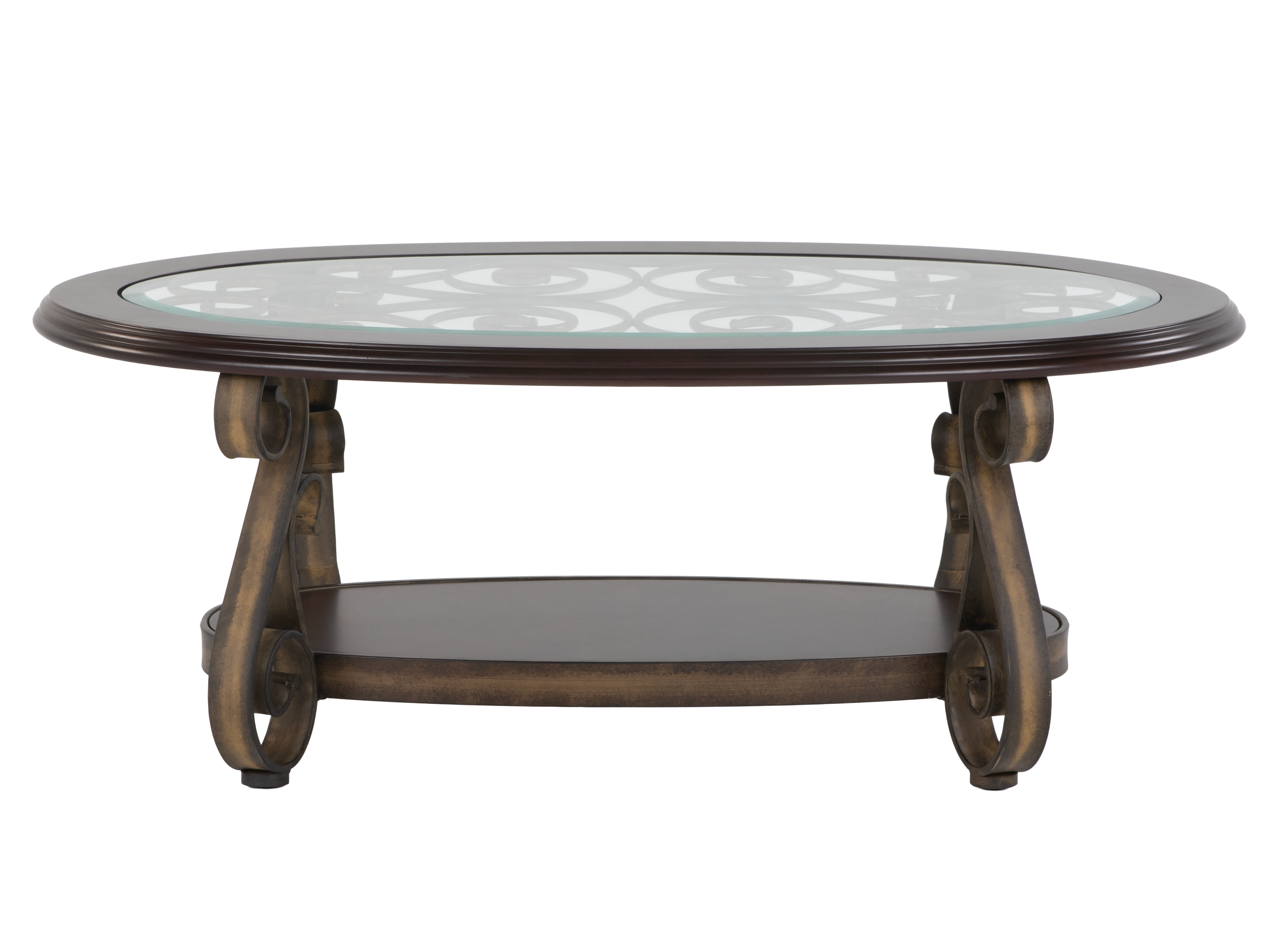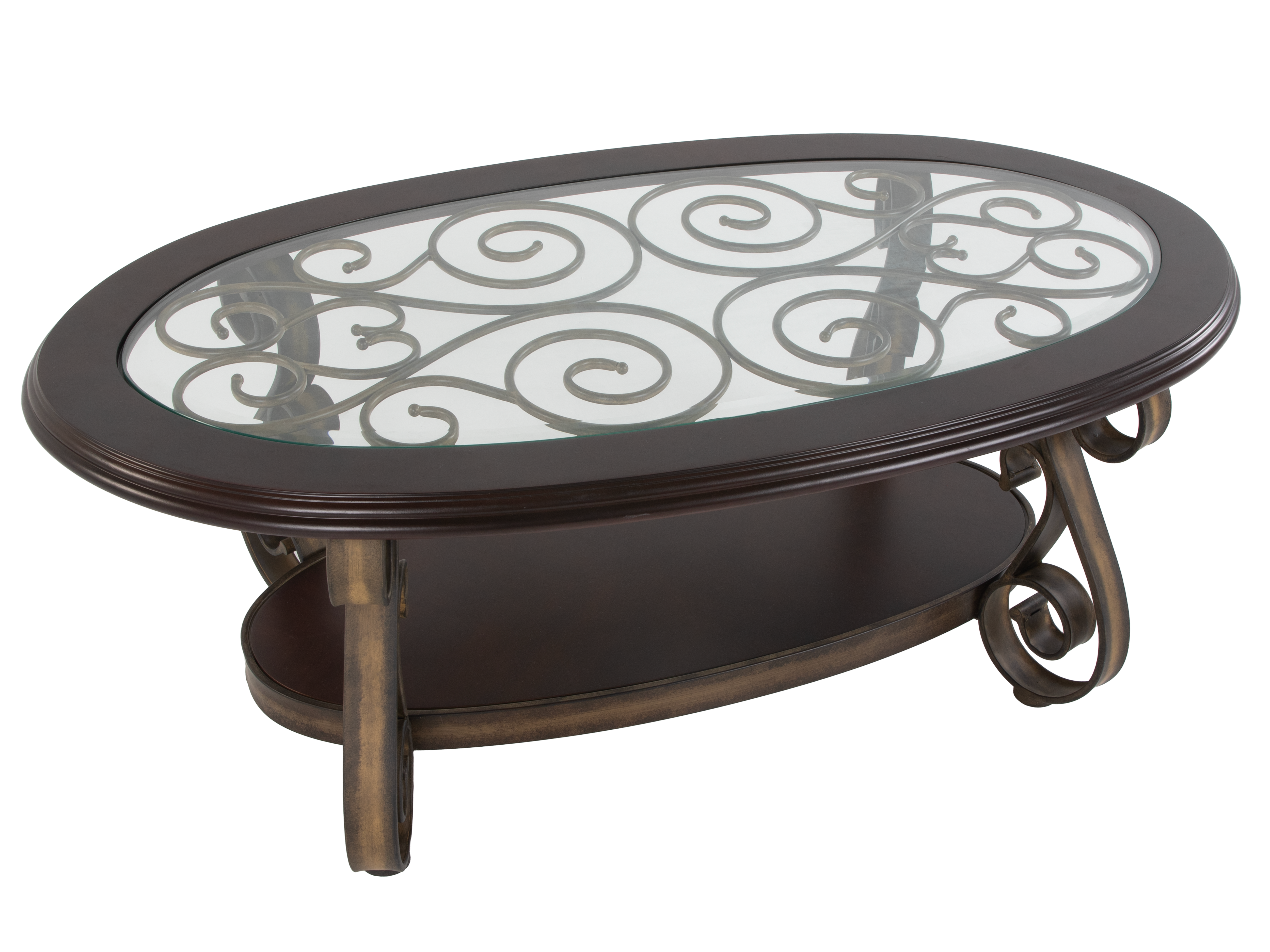 Bring timeless elegance to your living room with this Classic 3-Piece Coffee Table and End Table Set. Featuring a beautifully designed oval coffee table and two matching round end tables, this set showcases intricate curved metal legs and rich dark wood finishes. The glass inlay tops add a touch of sophistication while offering durable, easy-to-clean surfaces. Lower shelves on each table provide extra space for décor or storage. Perfect for both traditional and modern interiors, this set will become the focal point of any room.
