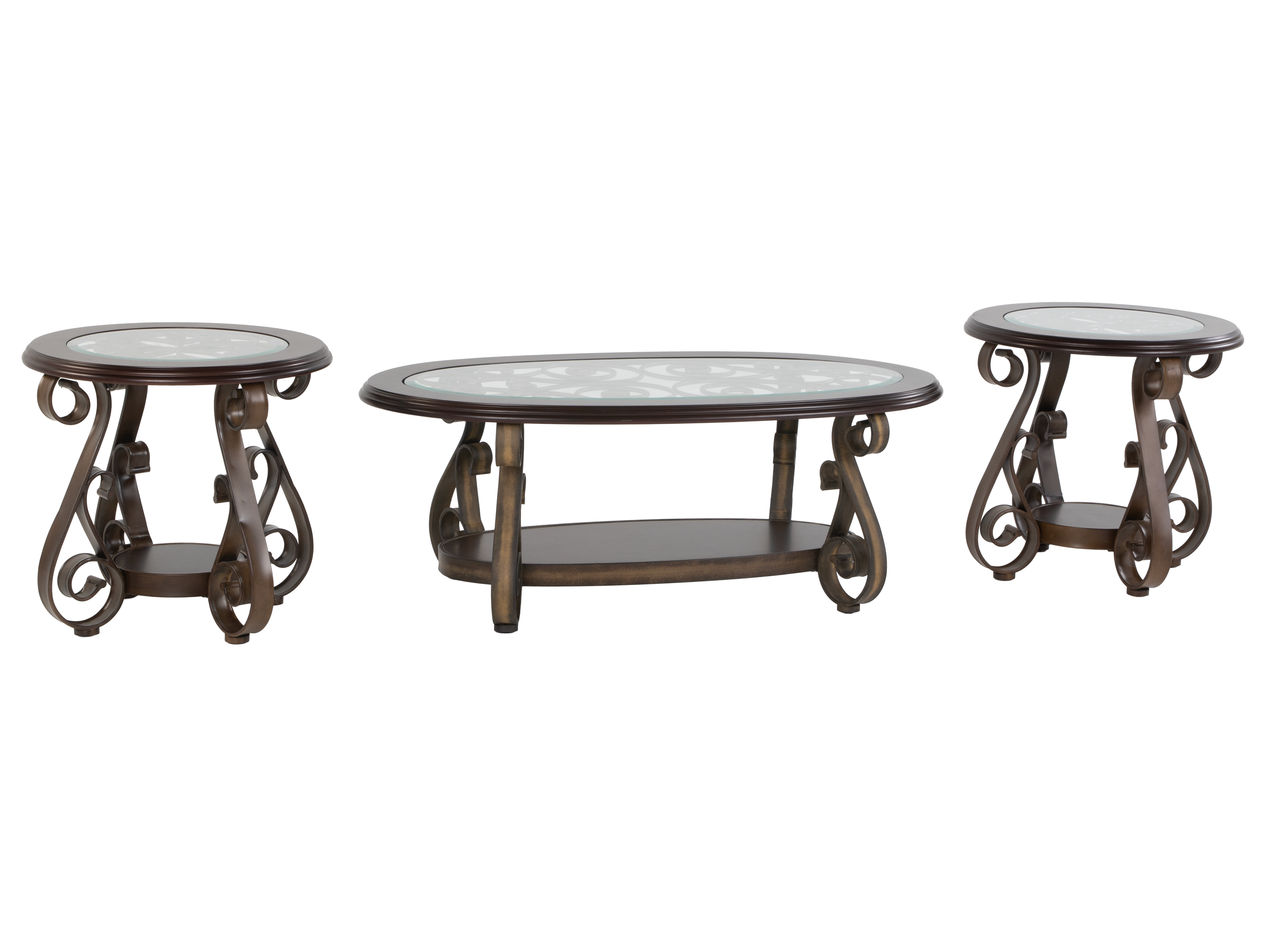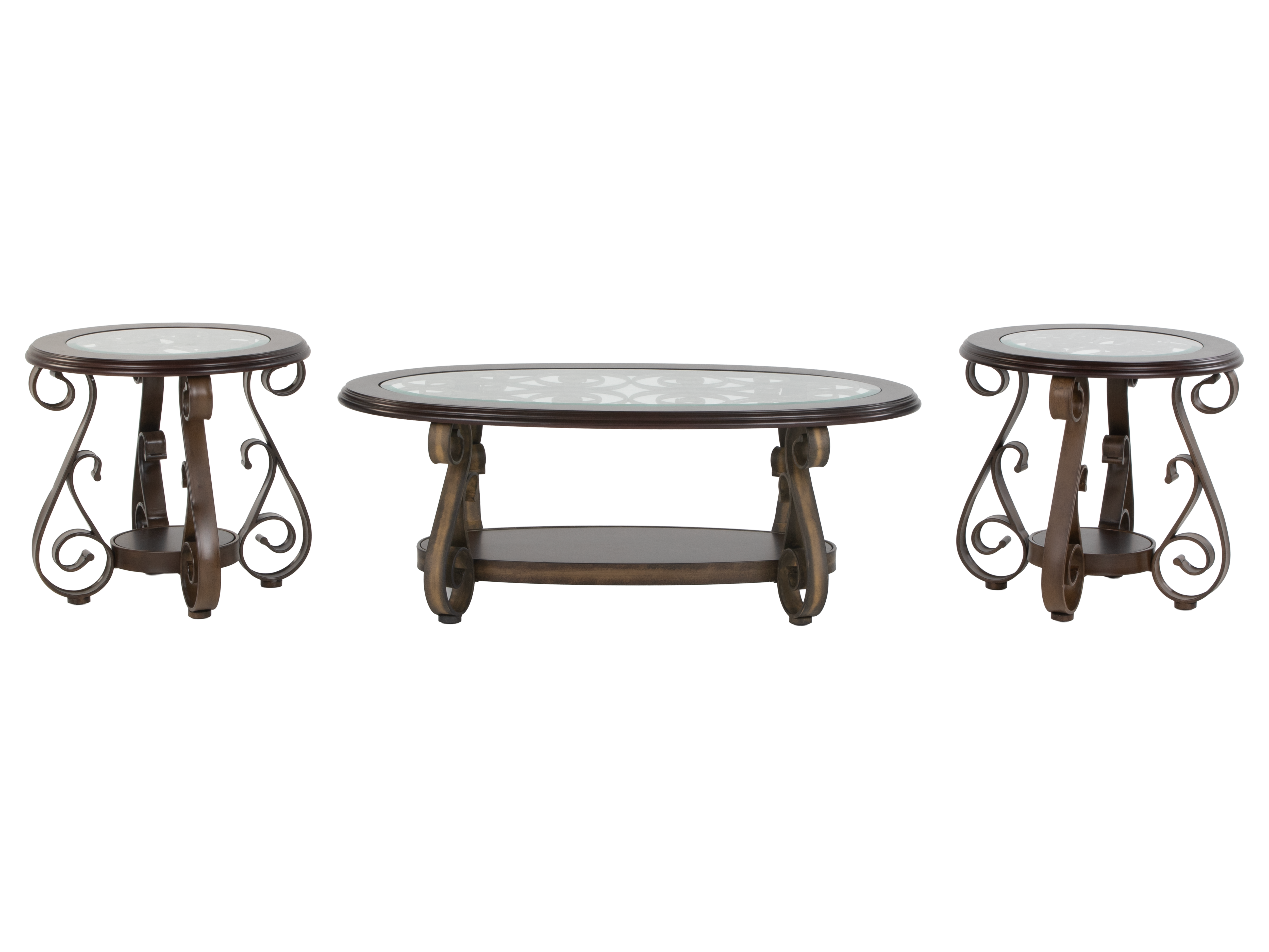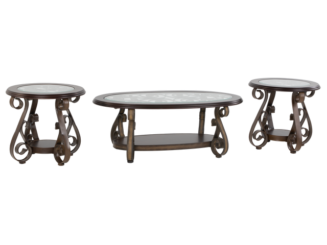 • Set Includes: One oval coffee table and two matching round end tables.