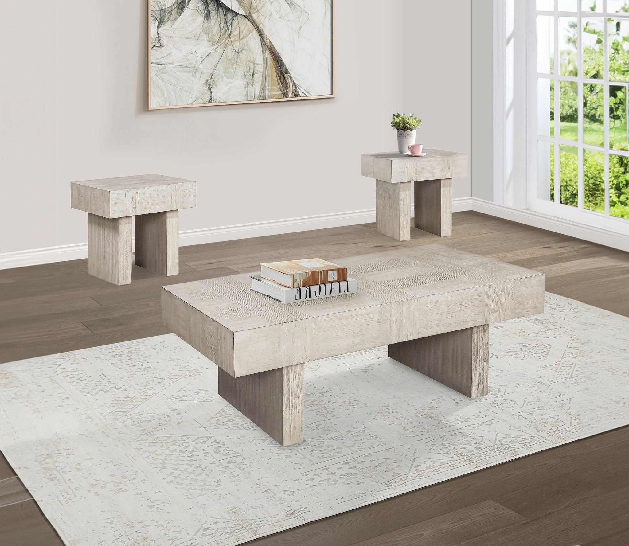 Introduce a bold statement to your living room with this striking cocktail table set, designed to captivate with its unique geometric aesthetic and robust construction. Each piece in the set features a substantial, block-like design, showcasing a richly textured wood finish that adds a touch of natural elegance. The clean, architectural lines create a powerful visual impact, making this set a perfect centerpiece for modern or contemporary spaces. The solid construction ensures durability and stability, while the generous surface area provides ample space for decorative items, books, or beverages. Elevate your home décor with this exceptional cocktail table set, offering a blend of form and function that transforms your living area into a sophisticated and stylish haven.