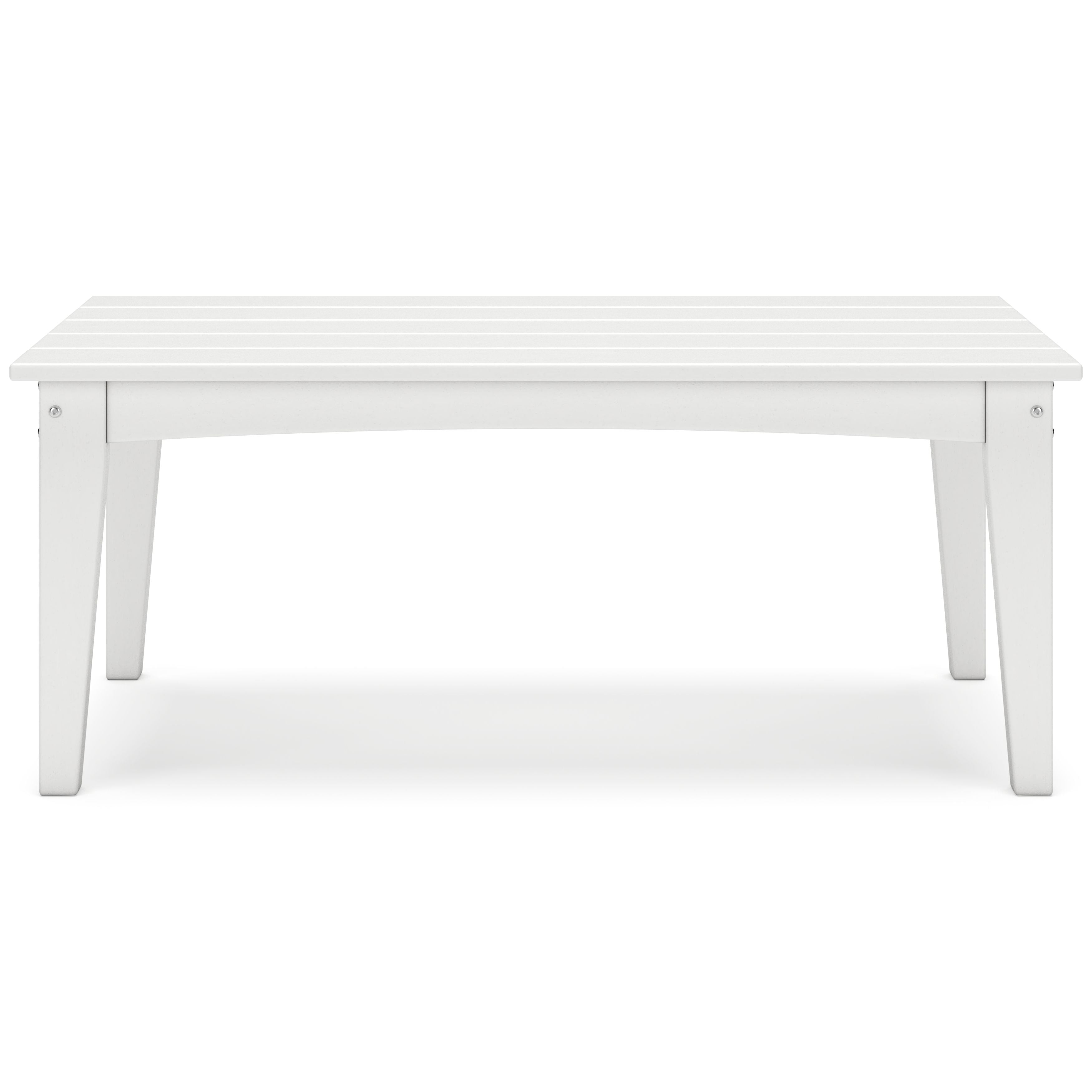 Drift into outdoor entertainment bliss with this coffee table. Dressed in a bright white for a fresh feel, it weathers sunny summer days and cozy winter nights with durable MEGA TUFF™ HDPE material. When it comes to form and function, the table's rain-shedding slatted design simply goes with the flow. Use it to hold outdoor decor, drinks or snacks.