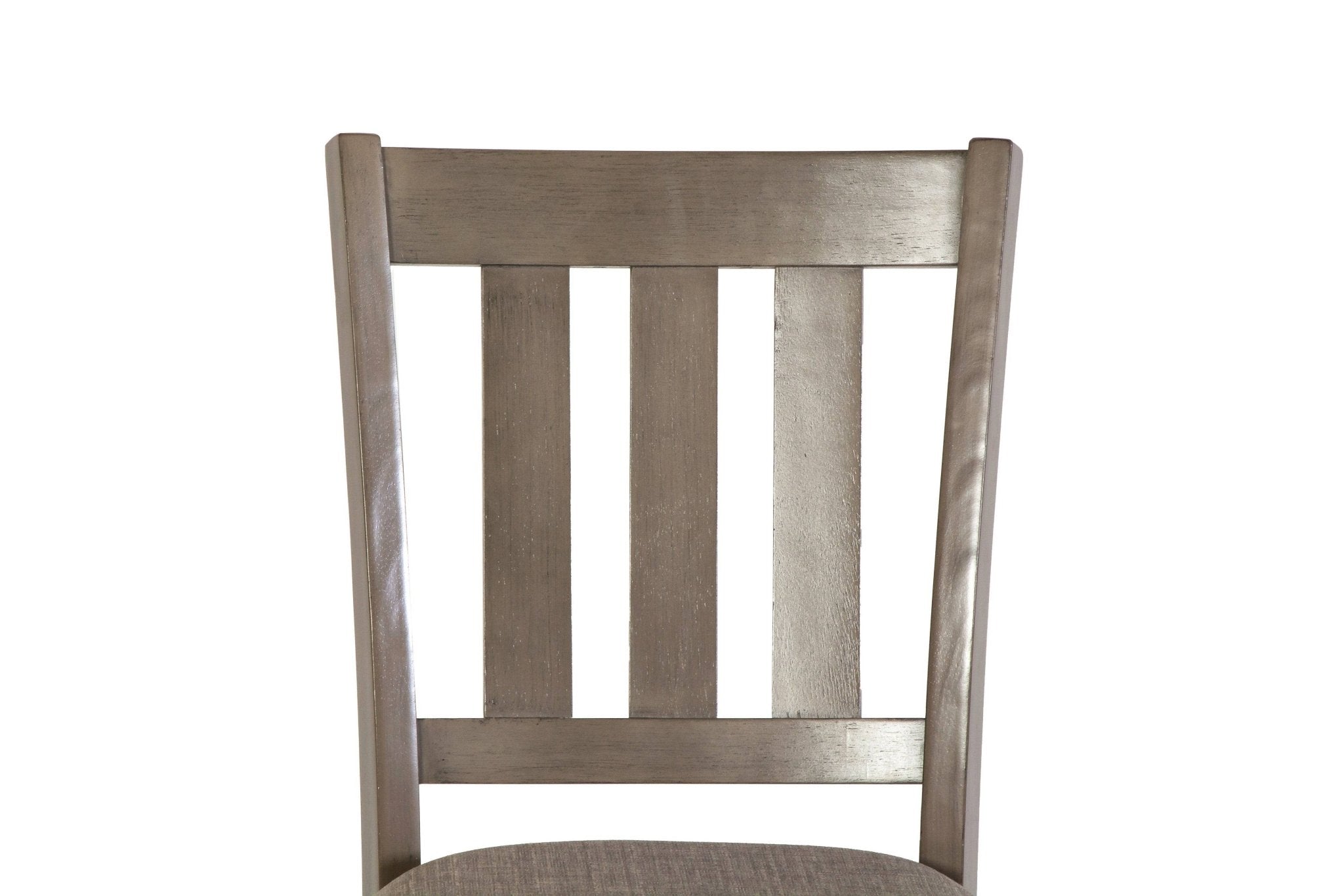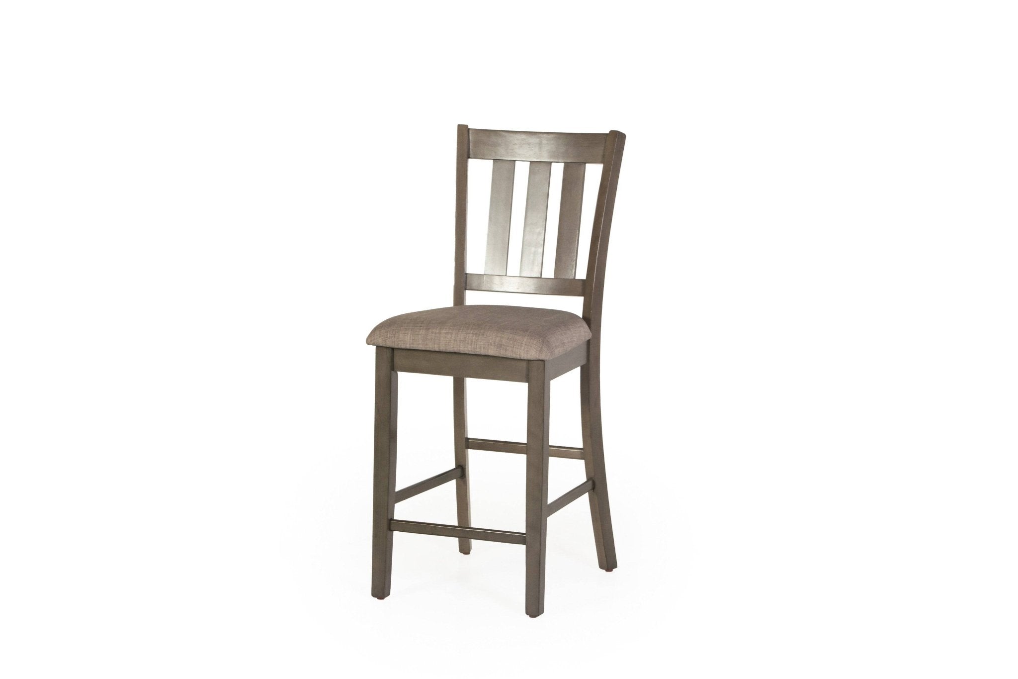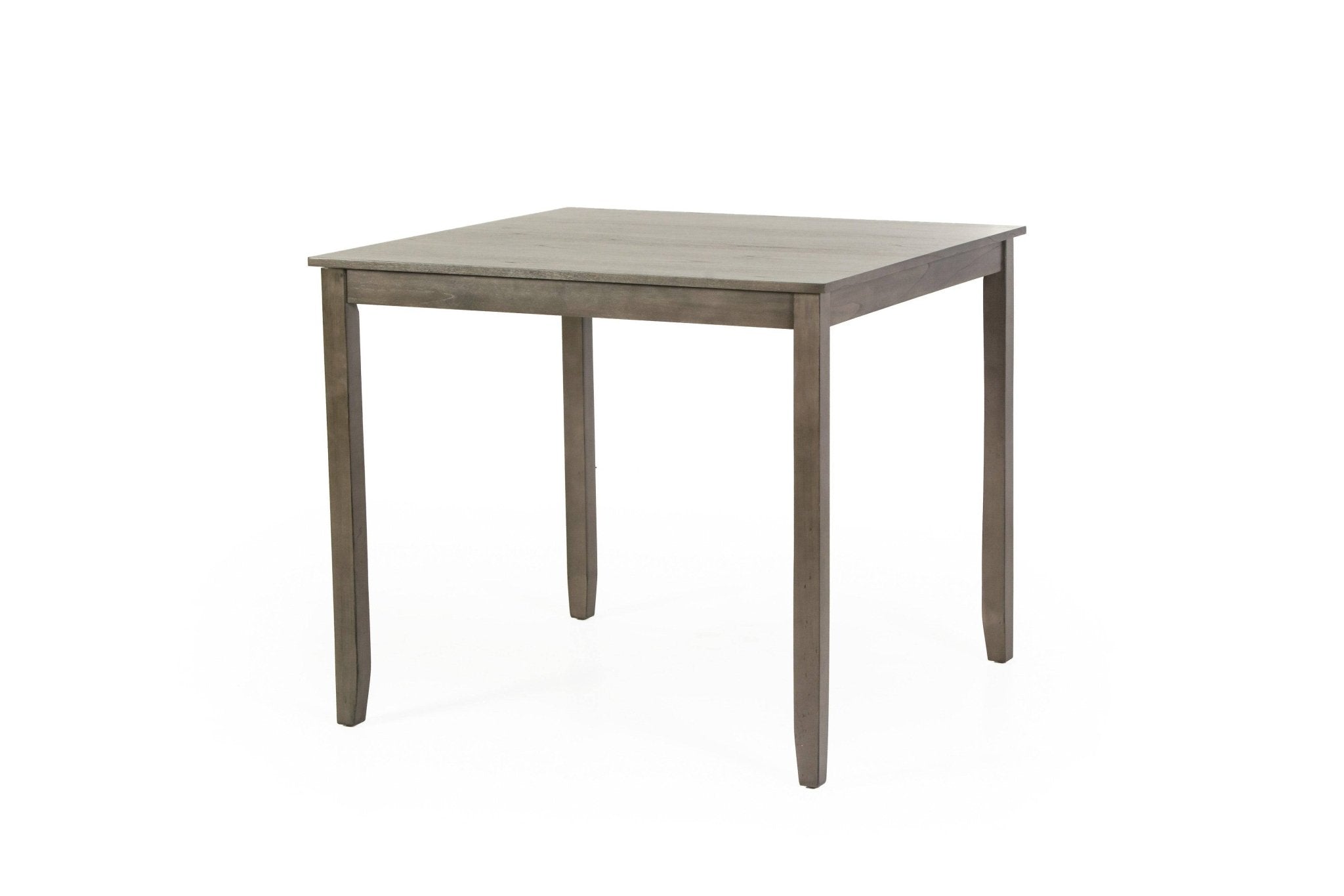Gather for meals and game night with this space-savvy counter set. A clean-lined square table in a versatile gray finish pairs with four slat-back counter stools featuring padded, easy-care seats. Sturdy wood construction, built-in footrests, and a compact footprint make it a natural fit for apartments, breakfast nooks, and open-plan spaces with modern or transitional style.