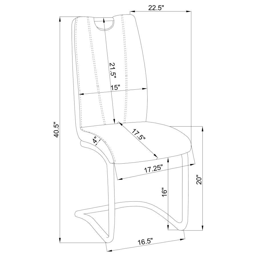 Give your entertainment area an ultra-modern feel with this five-piece dining table set. A spacious rectangular table with a gleaming high gloss white finish is supported by three stainless steel supports in a lustrous chrome finish that rest on a flush base that mirrors the top. With a pedestal-like design, the dining table invites each of the four cantilever style dining chairs to slide up for meals and conversations. Sit back and rest in the upholstered seats, wrapped in a two-tone gray and white leatherette that accents the contoured shapes. Mounted on a polished chrome metal base, the cantilever design chairs also offer an open, airy feel that showcases the table.