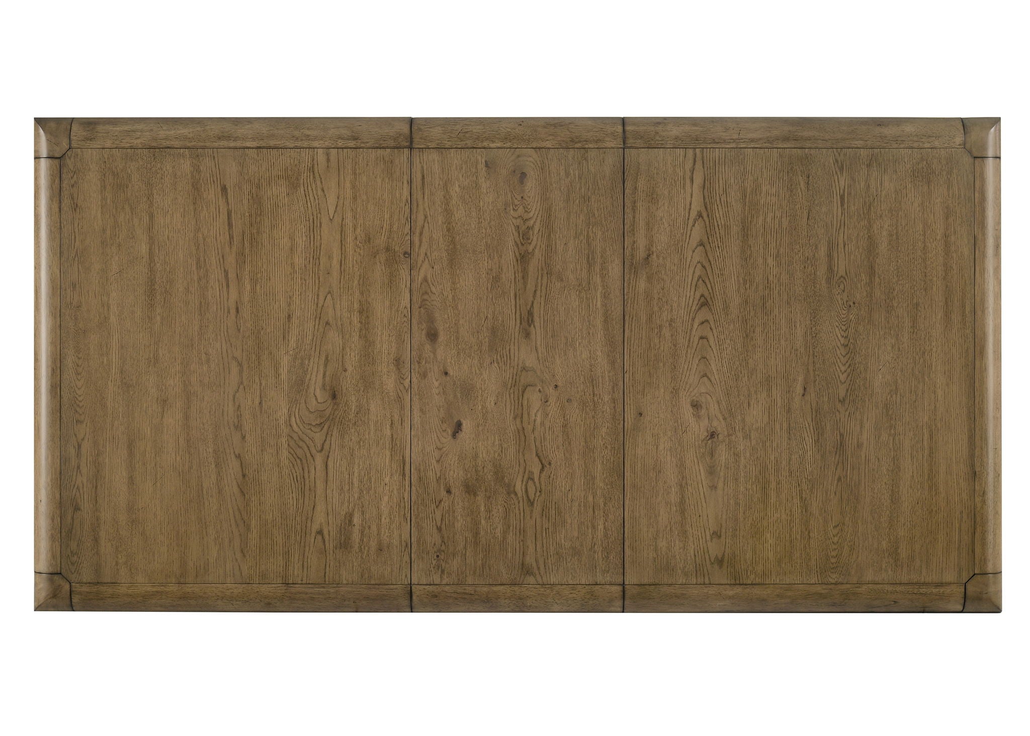 Warm and inviting, this dining group brings a natural charm to the home with its rustic wood tones and clean, understated lines. The rectangular table features a subtly rounded edge and a durable, plank-style top that extends to accommodate extra guests, making it ideal for both everyday dining and special gatherings. Upholstered chairs and bench offer padded seating in a soft, neutral fabric that enhances comfort while complementing the warm wood finish. The design balances casual elegance with practical versatility, creating a welcoming atmosphere perfect for modern family living.