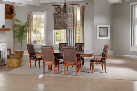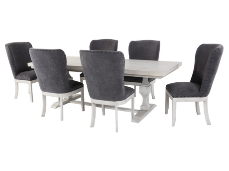 Rated 4.8 out of 5 stars44 Reviews$1,267.95$1,491.71Unit price /Unavailable7-Piece Round Rustic Dining Set with Rivet-Trim Chairs (Gray/Charcoal)