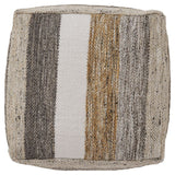 Weaving together stripes in grounded, earthy tones, this pouf is a natural beauty. It combines simple flair and function, with hues of white, honey and shades of gray and brown to keep things casual. Whether used as a footrest or a side table, this piece has an undeniably universal appeal.