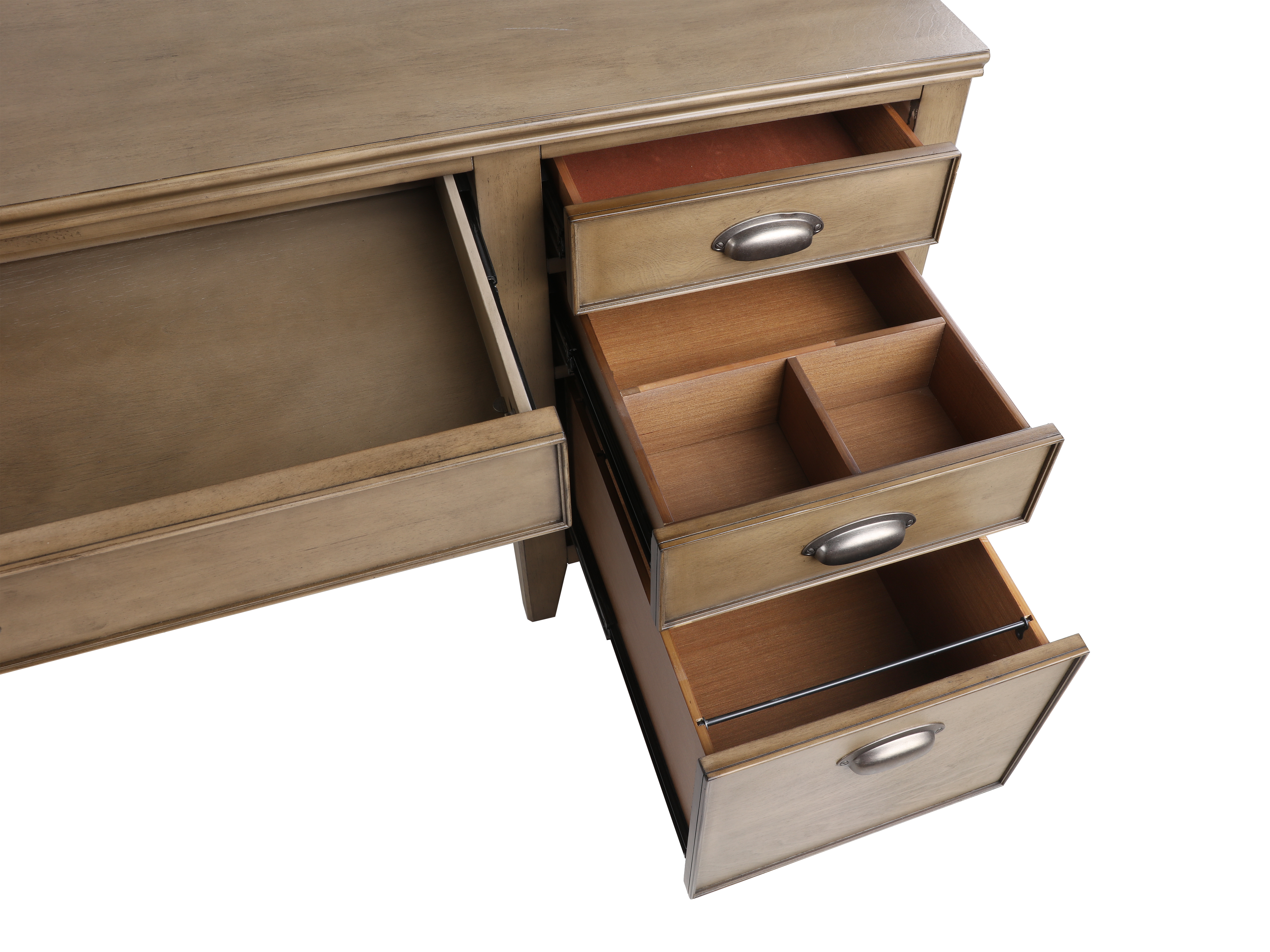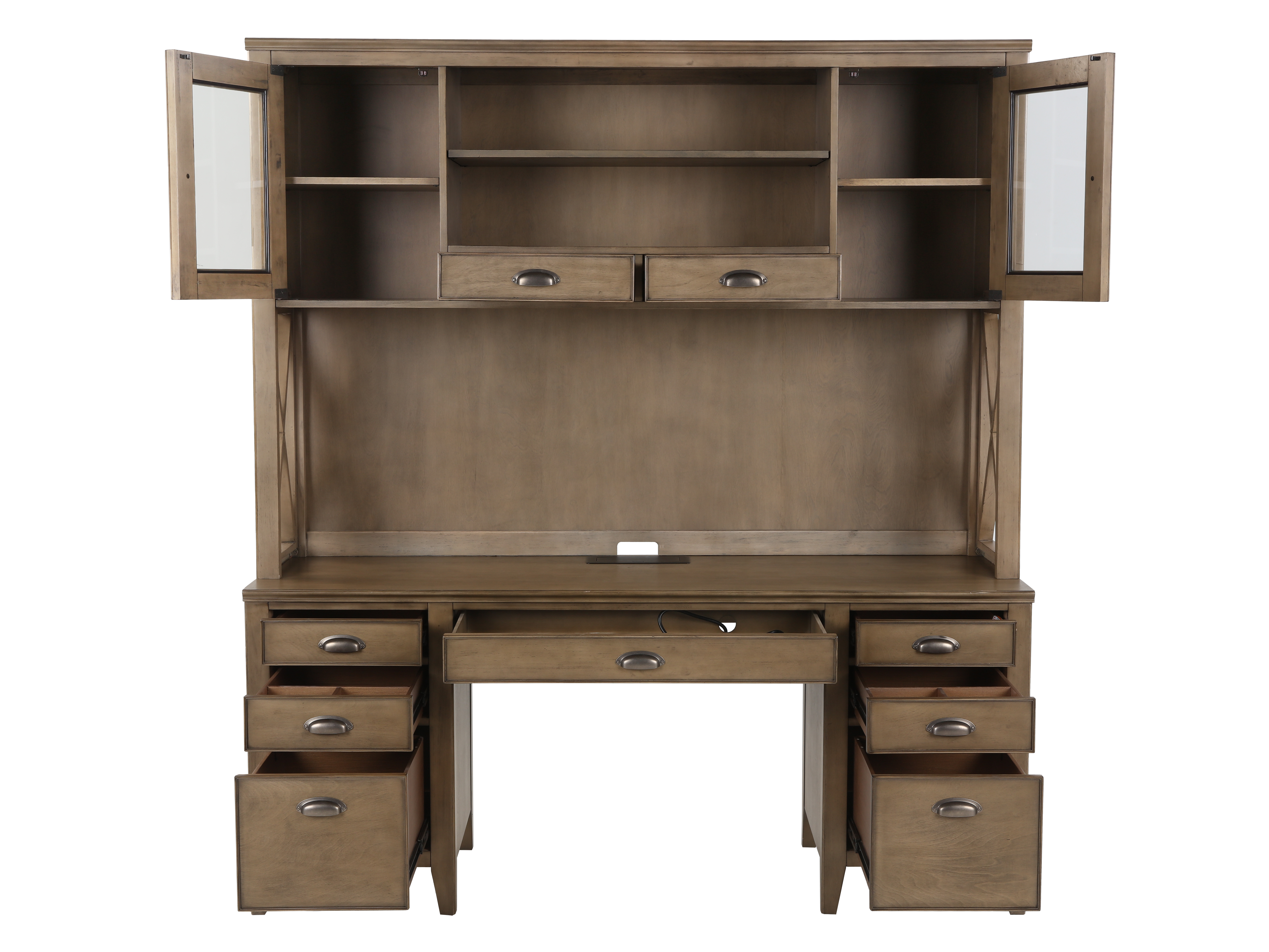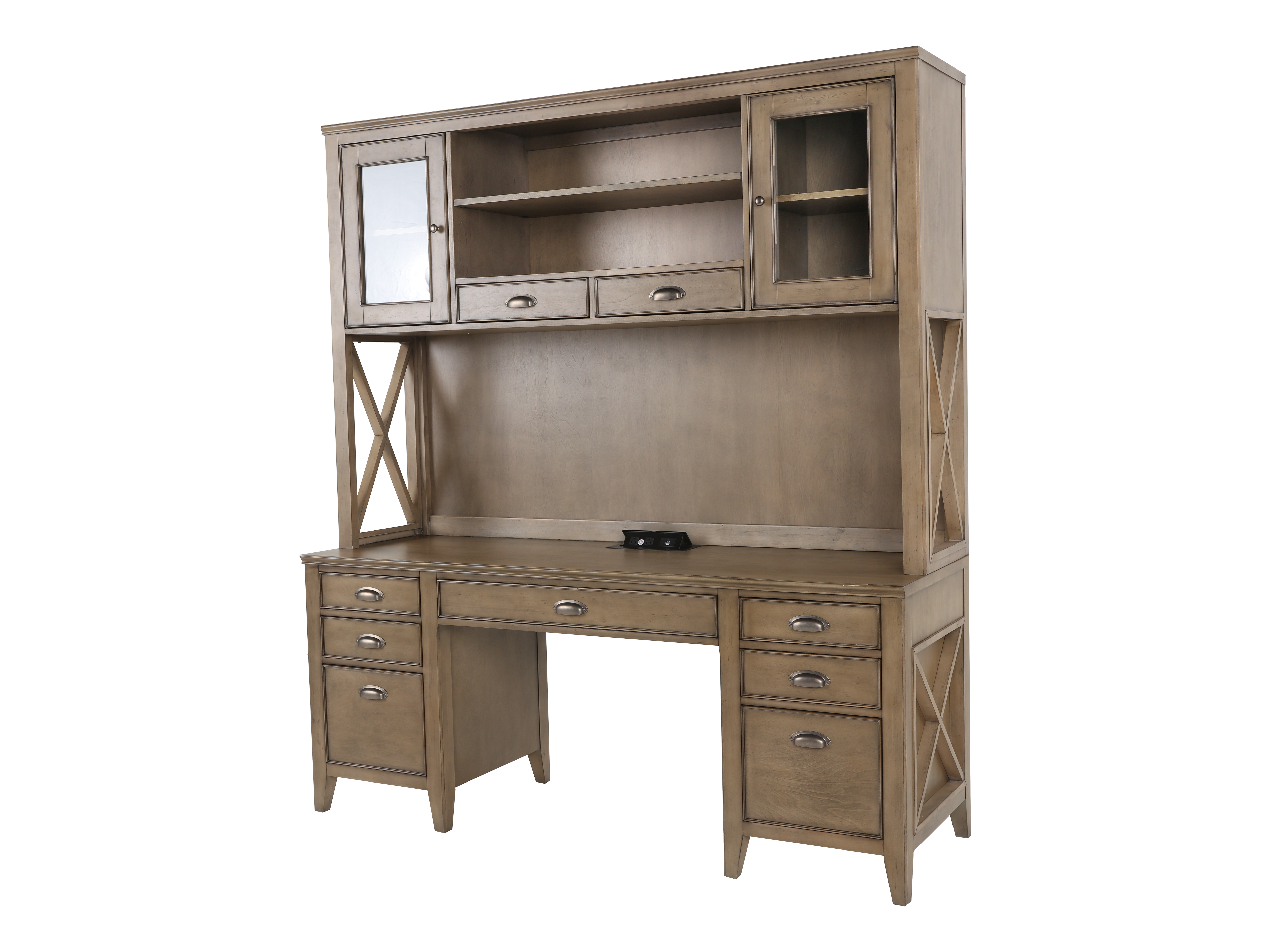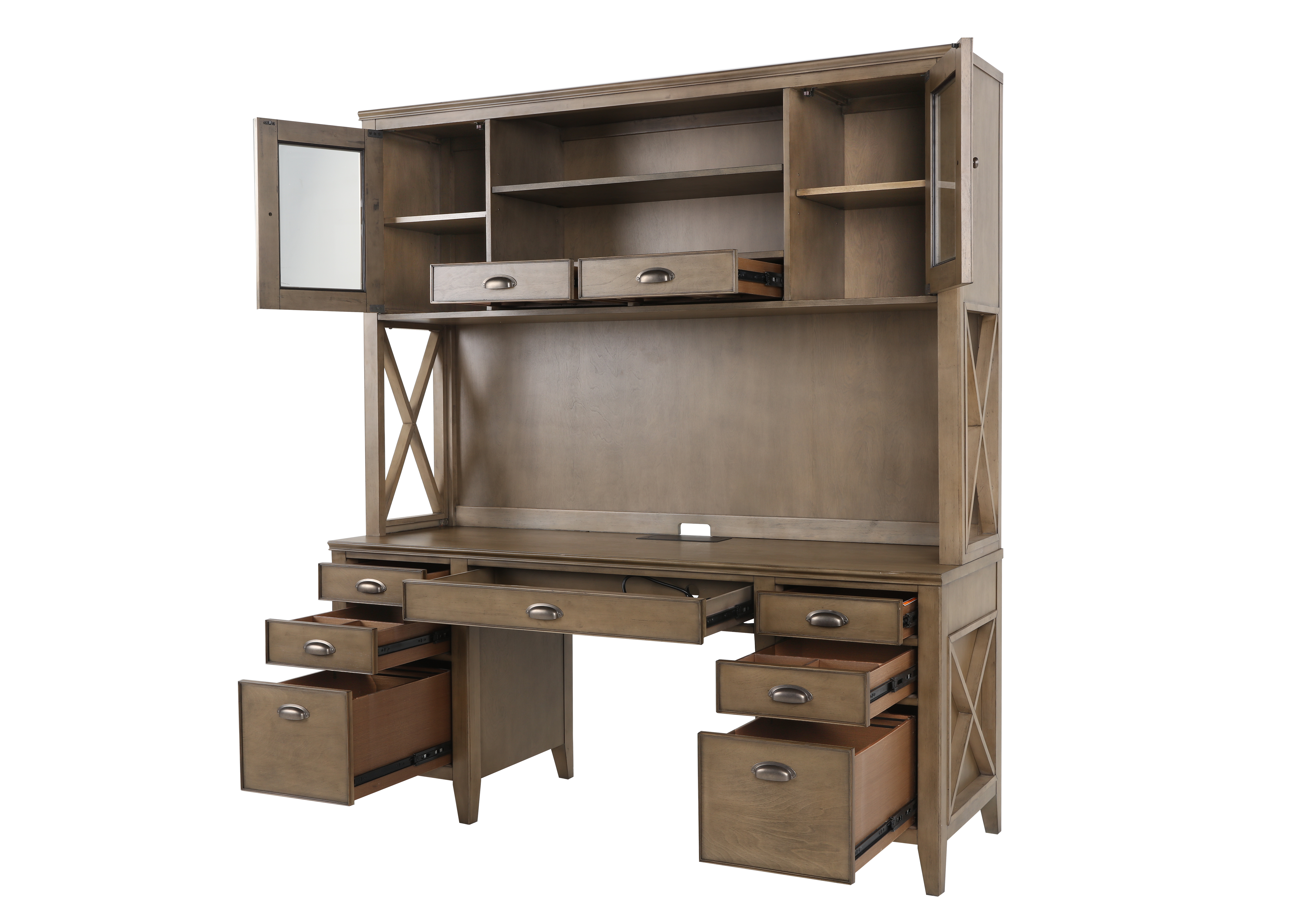 This credenza and hutch is the perfect addition to elevate your home office space. Crafted from durable and timeless solid wood, this furniture duo offers a blend of functionality and style, designed to meet your storage needs. With ample shelves and storage compartments, it provides a convenient and organized solution for your computer and a space for keeping various items in your home office. Explore the versatility and practicality of this credenza and hutch combination, and discover how it can enhance your workspace.