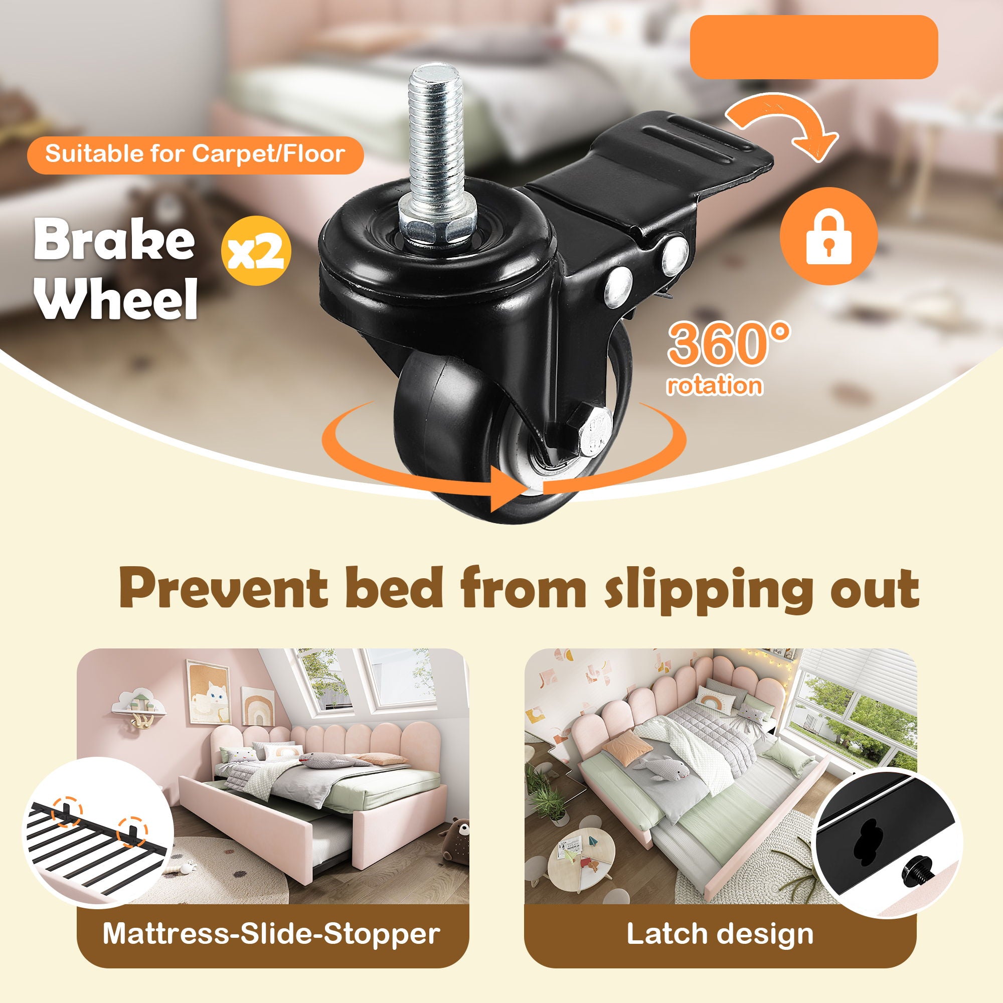 Twin Size Sofa L-Shaped Daybed With Pull Out Twin Bed - Pink