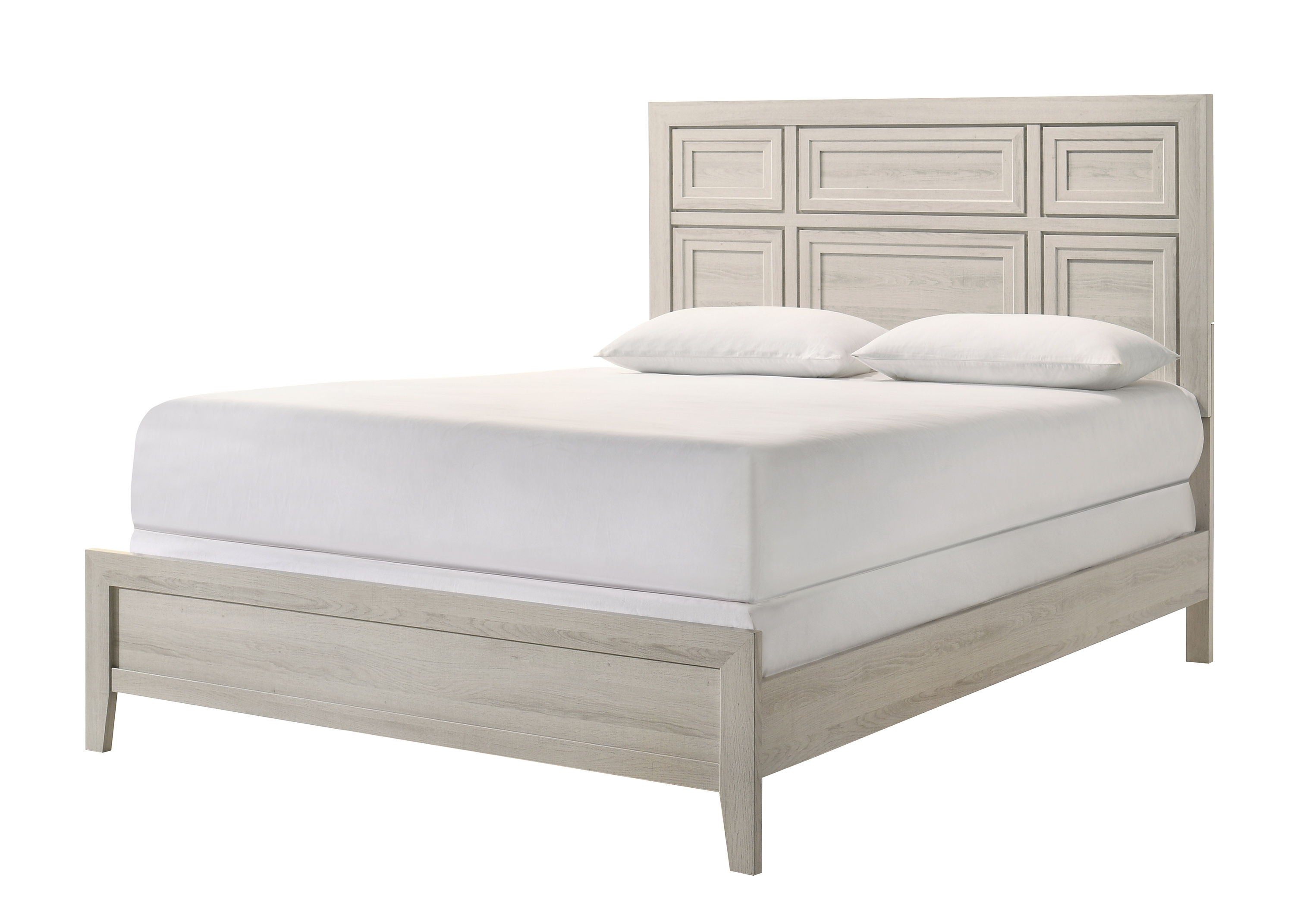 Elevate your bedroom with this elegantly designed furniture collection, blending contemporary sophistication with timeless charm. The soft, light wood finish exudes a sense of tranquility, while the intricate panel detailing adds a touch of refined craftsmanship. Designed for both style and functionality, this set features ample storage solutions, including spacious drawers with sleek, modern handles that enhance its aesthetic appeal. Complemented by coordinating pieces that bring harmony to the space, this collection is the ideal blend of beauty and practicality, making it a perfect addition to any home.