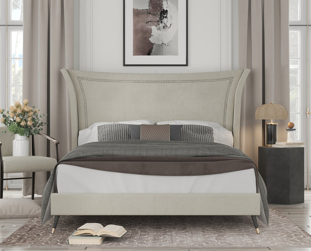 Fog Upholstered Wingback Bed with Nailhead Trim