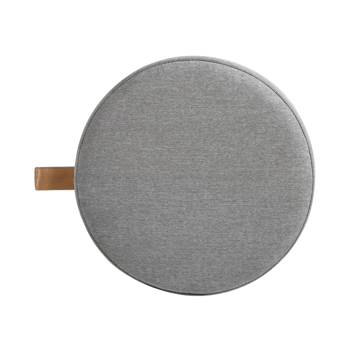 Brandy - Round Upholstered Storage Ottoman With Leather Accent - Gray