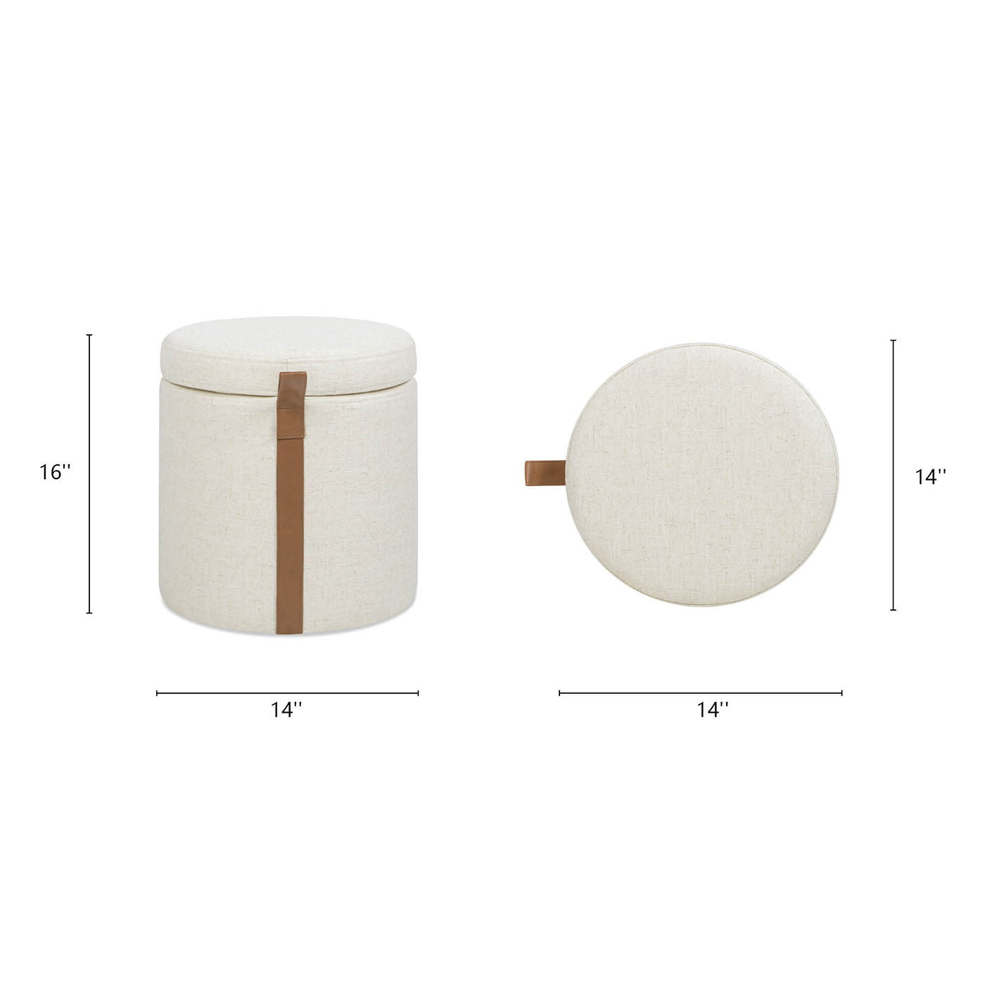 Brandy - Round Upholstered Storage Ottoman With Leather Accent - Flax White