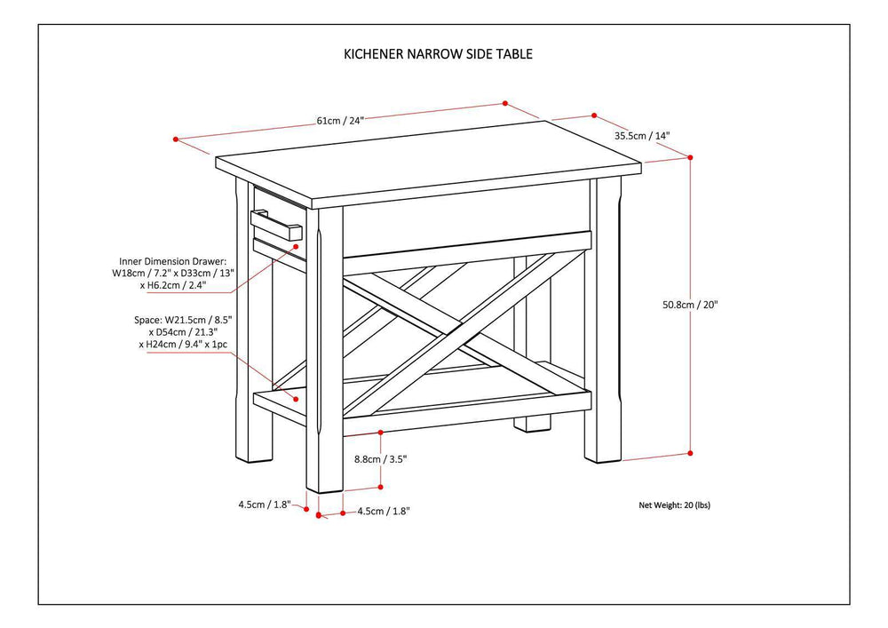 Kitchener - Narrow Side Table - Farmhouse Gray
