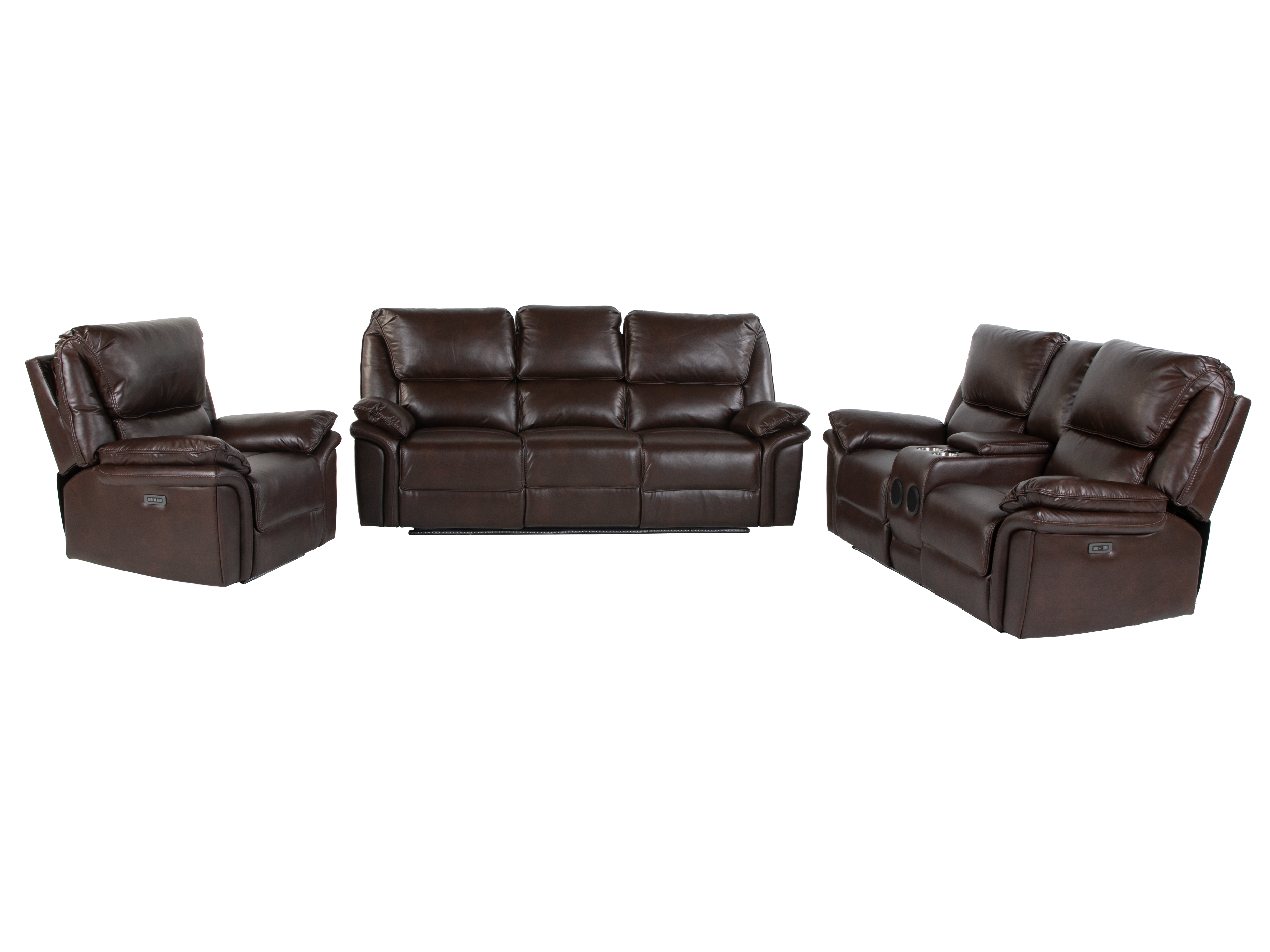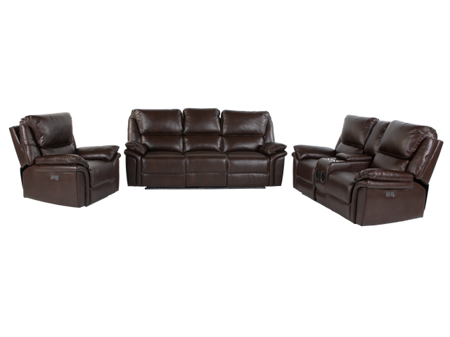 - Set includes: Power reclining sofa, loveseat, and recliner