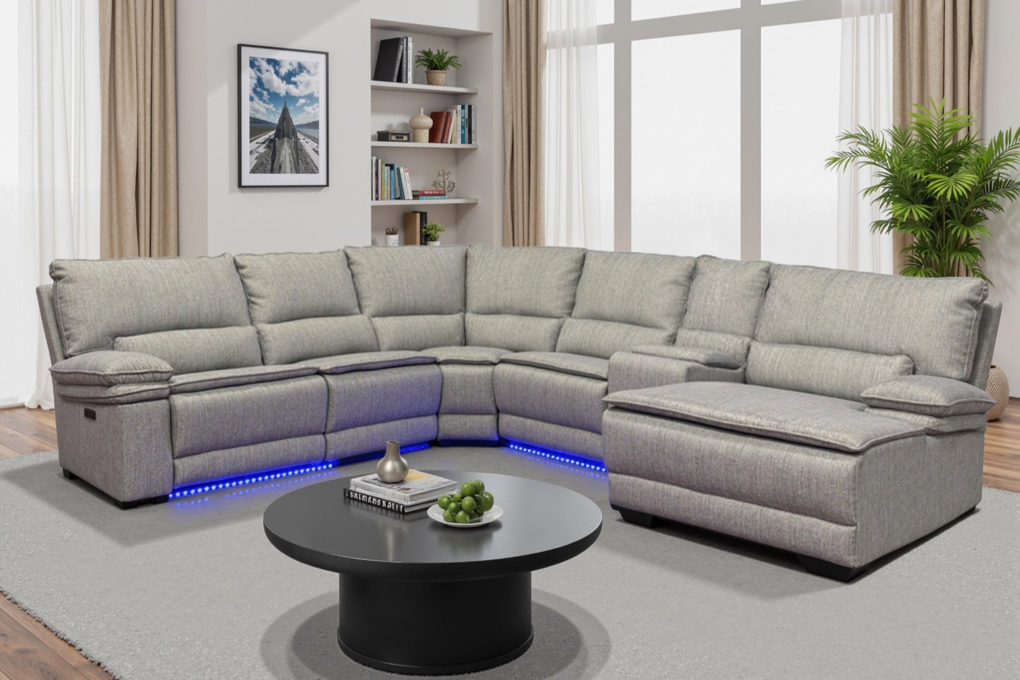 4 Piece Modern Power Reclining Sectional with LED Lights, Storage, and USB Charging Ports