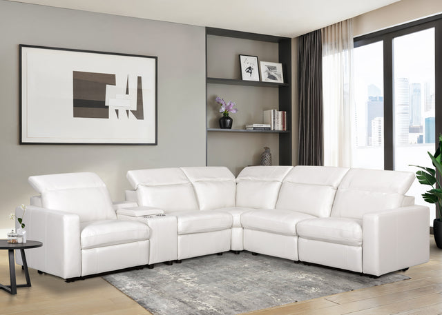 Experience modern luxury and supreme comfort with this Power Reclining Sectional. Upholstered in elegant, easy-to-clean white leather, this sectional combines sophisticated style with ultimate relaxation.