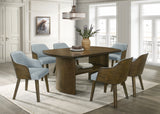 Rustique Brown 7-Piece Dining Set — 70″ Rectangular Table & 6 Upholstered Barrel Chairs