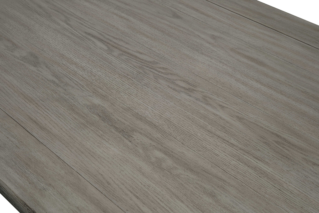 Elevate your dining space with this sophisticated and functional dining table set, expertly crafted to blend rustic charm with contemporary design. The centerpiece is a sturdy rectangular table featuring a distressed light wood tabletop that highlights natural grain patterns for an authentic, weathered look. This tabletop is paired with robust black legs and frame, providing both strength and striking contrast.