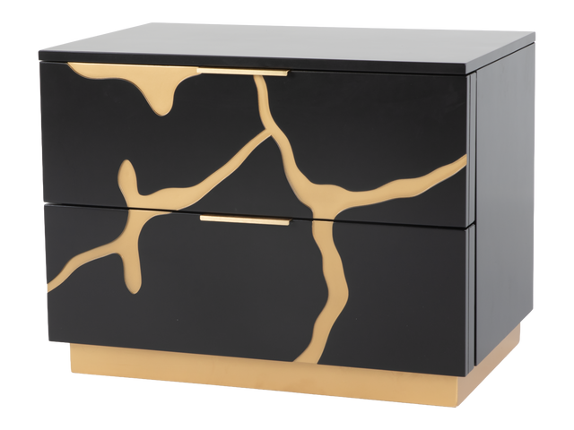 Black and Gold 2-Drawer Nightstand – Modern Luxury Bedside Table