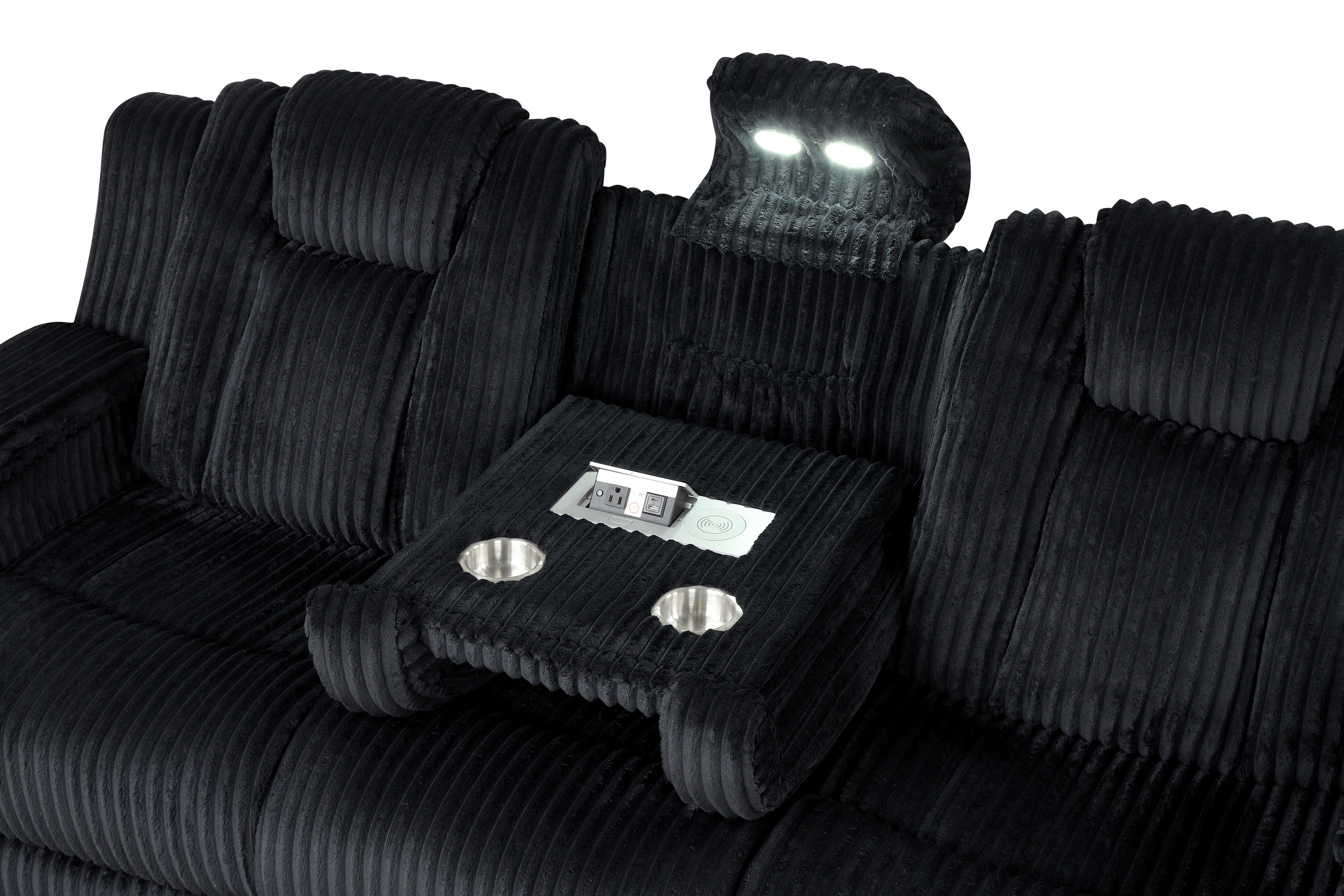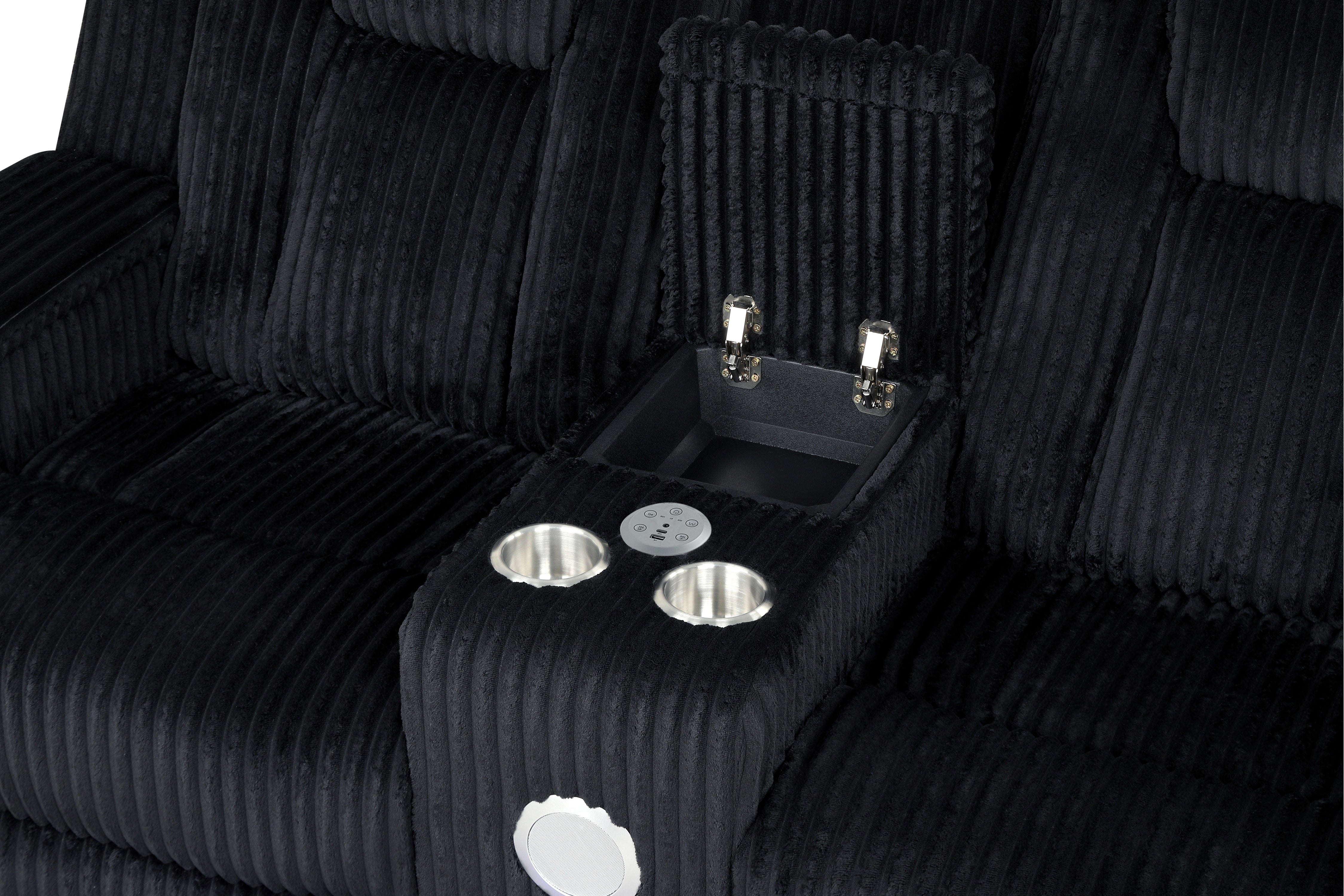Black Corduroy Power Reclining 3-Piece Living Room Set with LED Lights, Speakers & Charging