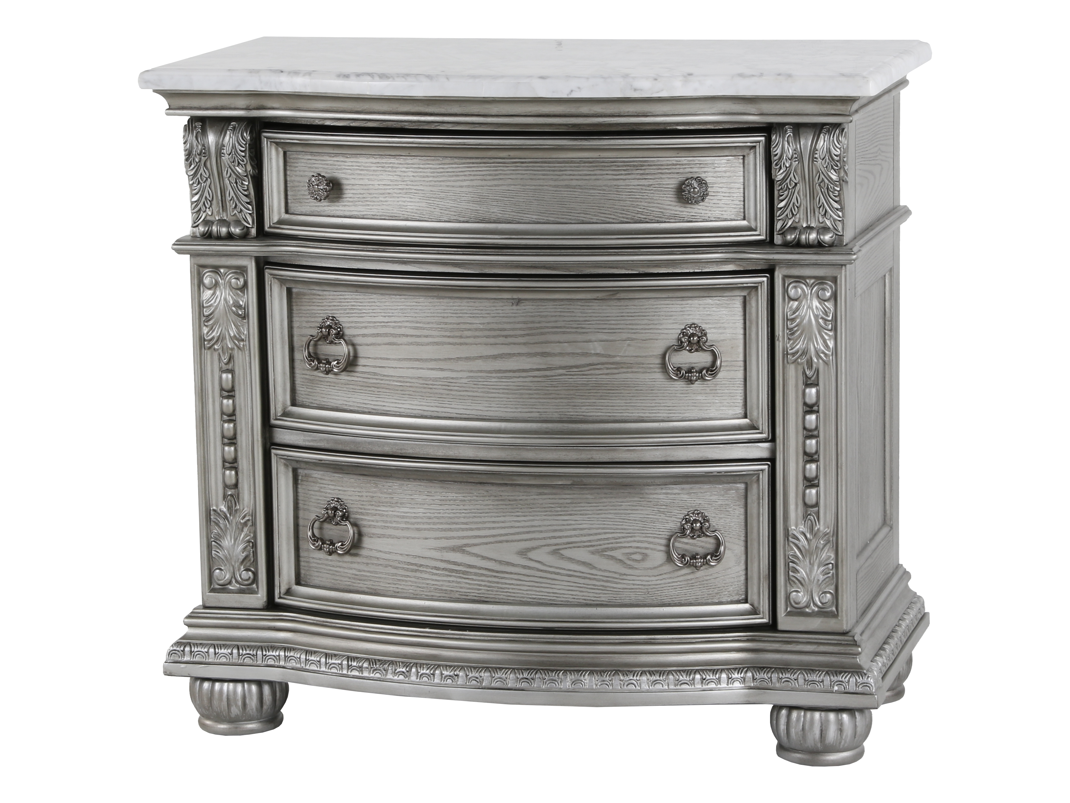 Cavalier Nightstand with Marble Top – Gray Finish
