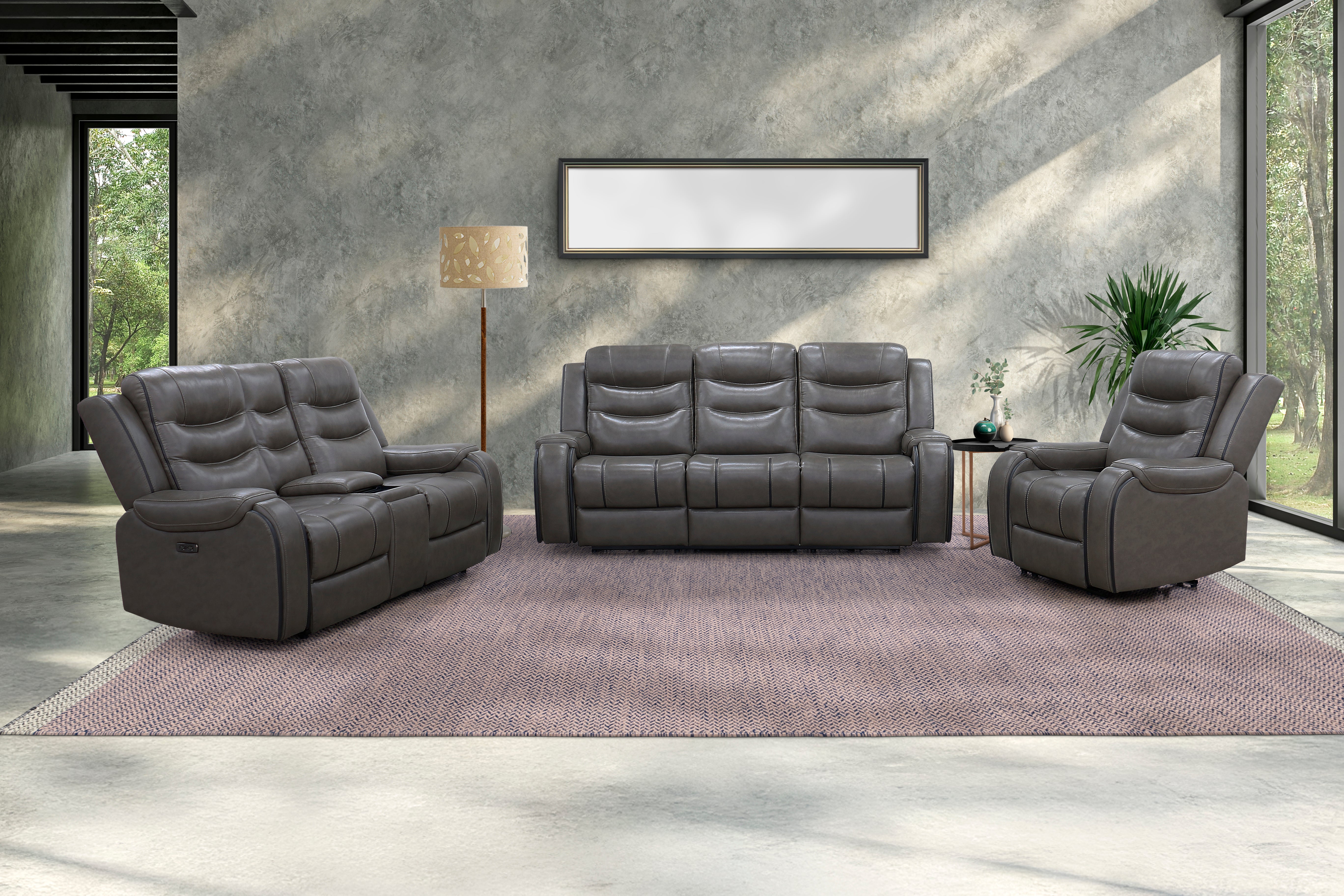 - 3-piece power reclining living room set (sofa, loveseat with console, and recliner)