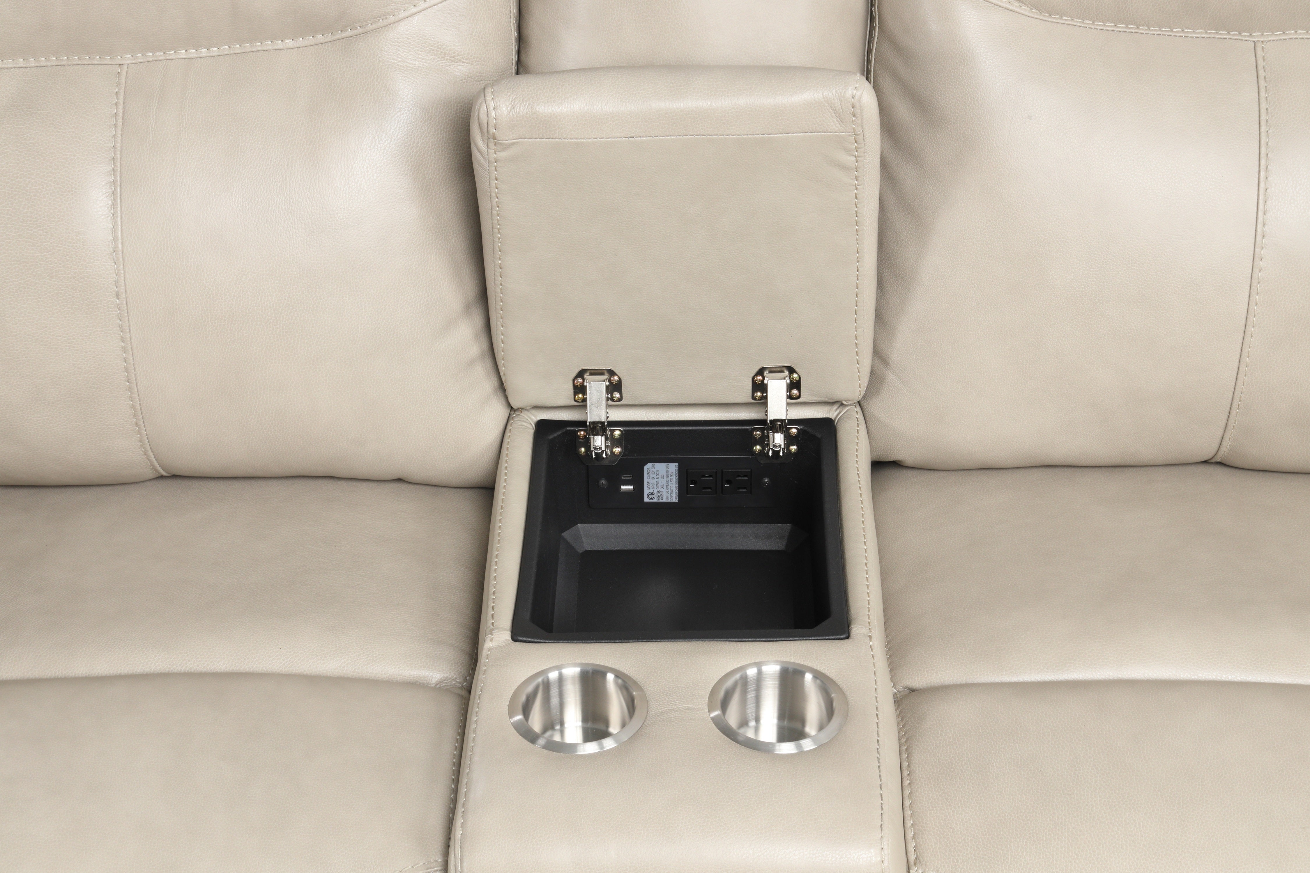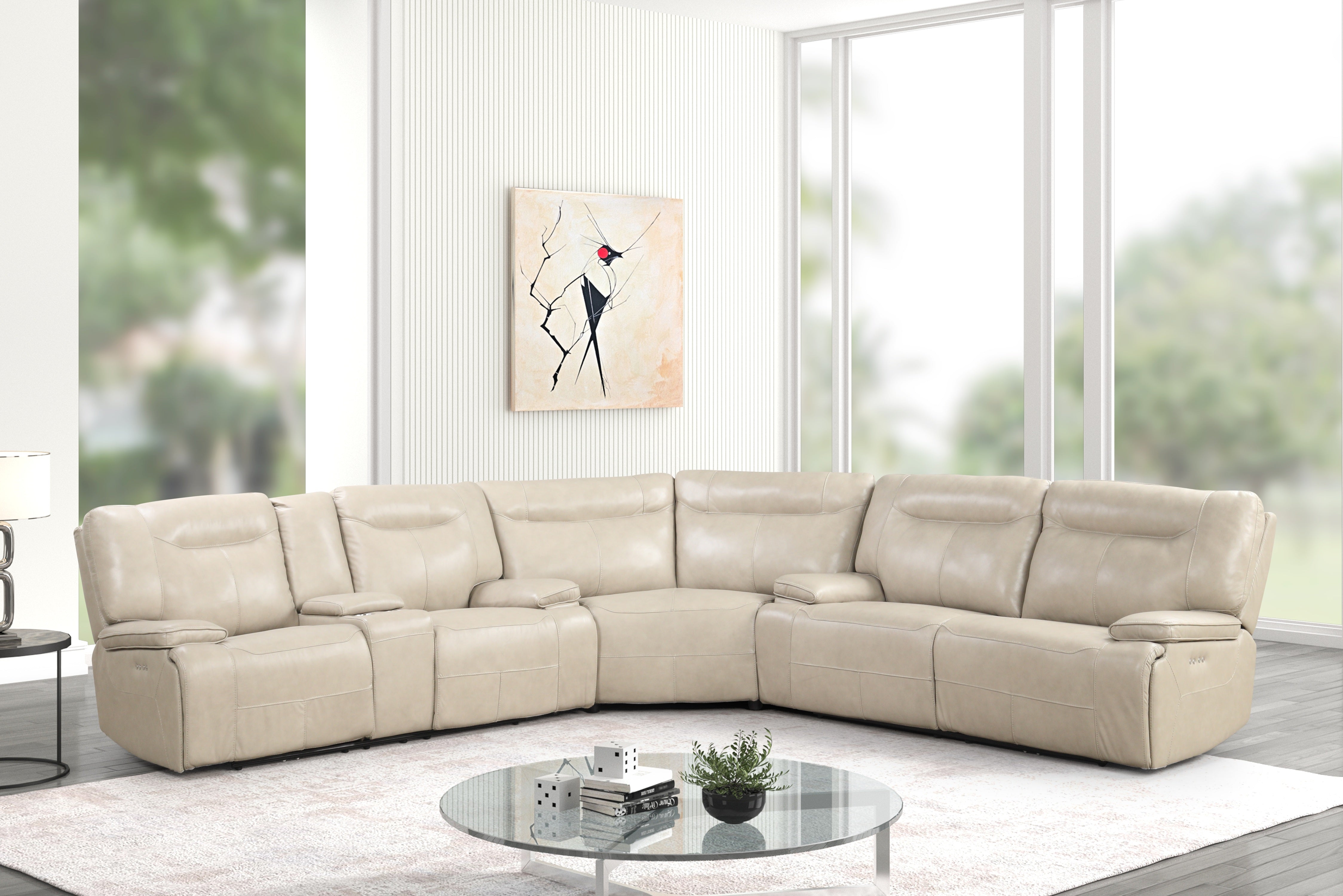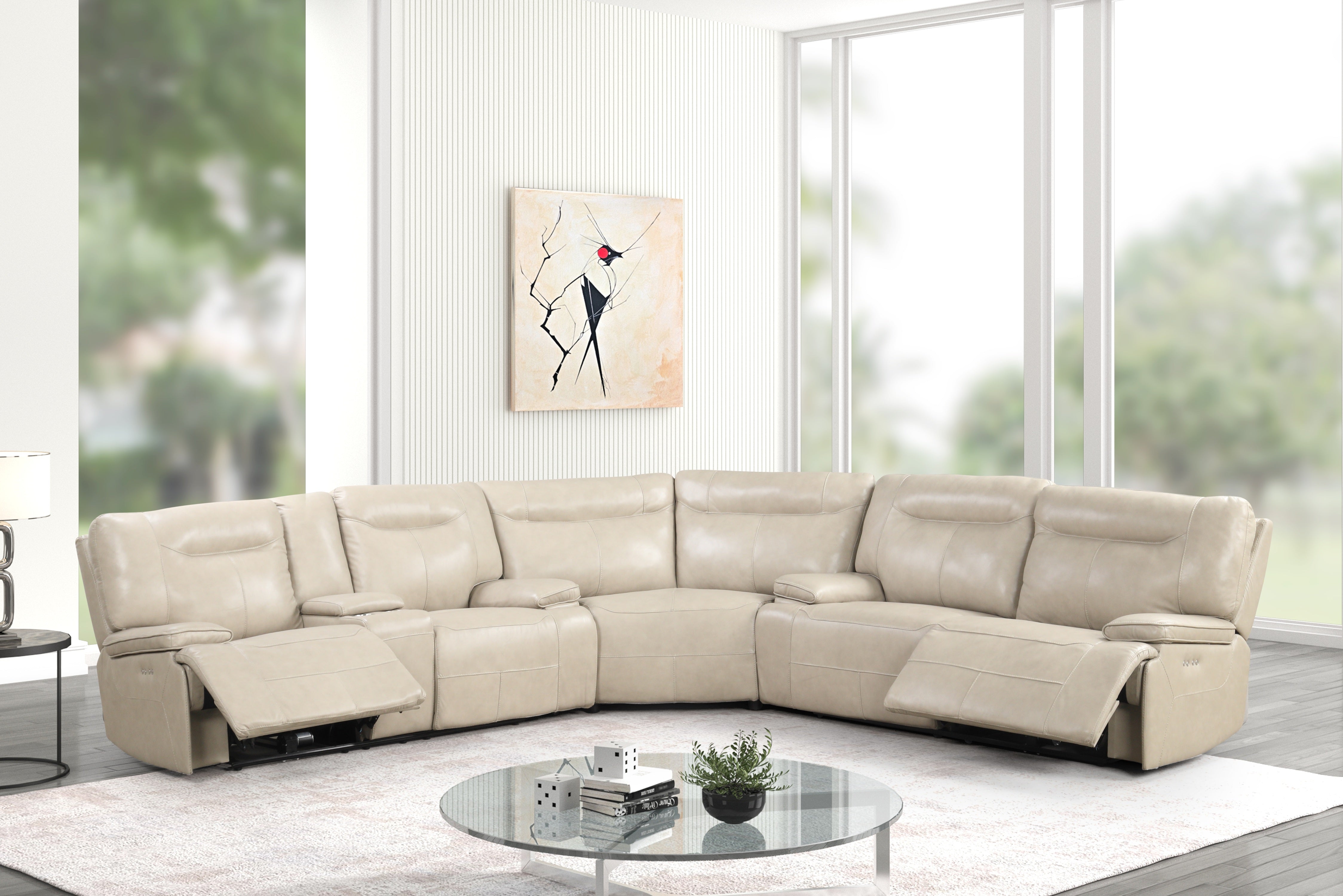 Cream Top Grain Leather Power Reclining Sectional with Console & Wireless Charging