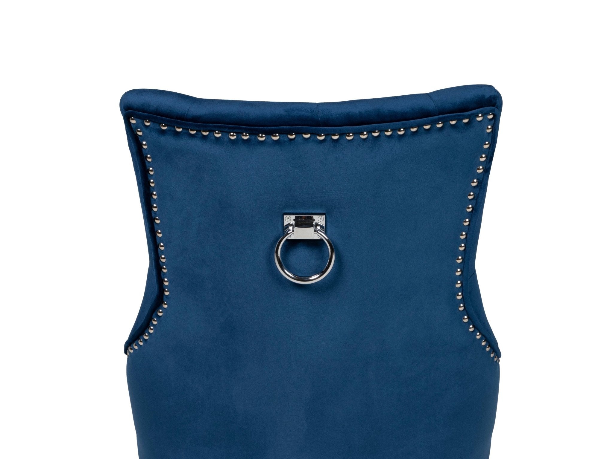 Glam Marble-Top 7-Piece Dining Set with Blue Velvet Tufted Chairs & Chrome Base