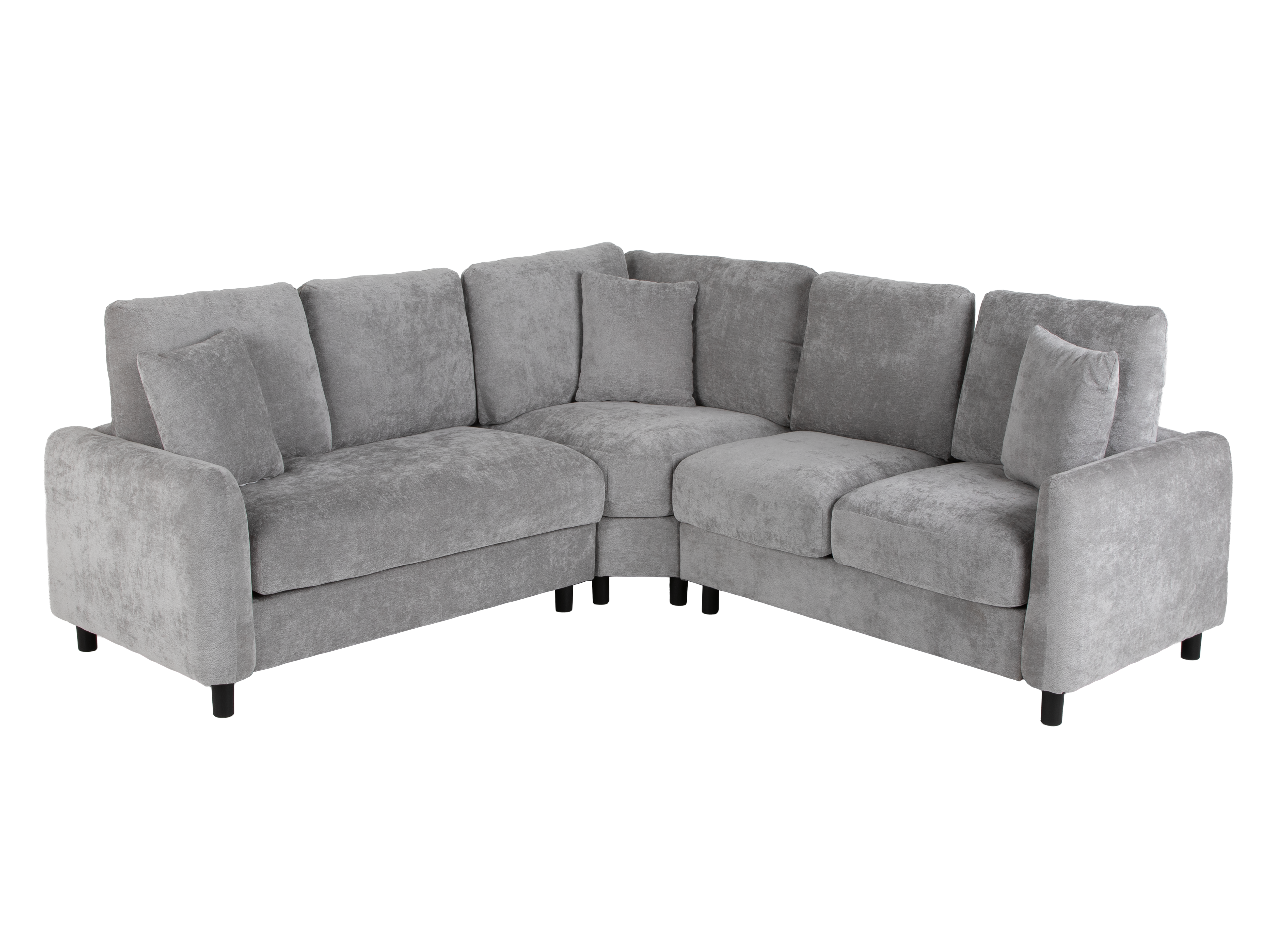 Modern Grey Chenille 3-Piece Corner L-Shaped Sectional Sofa