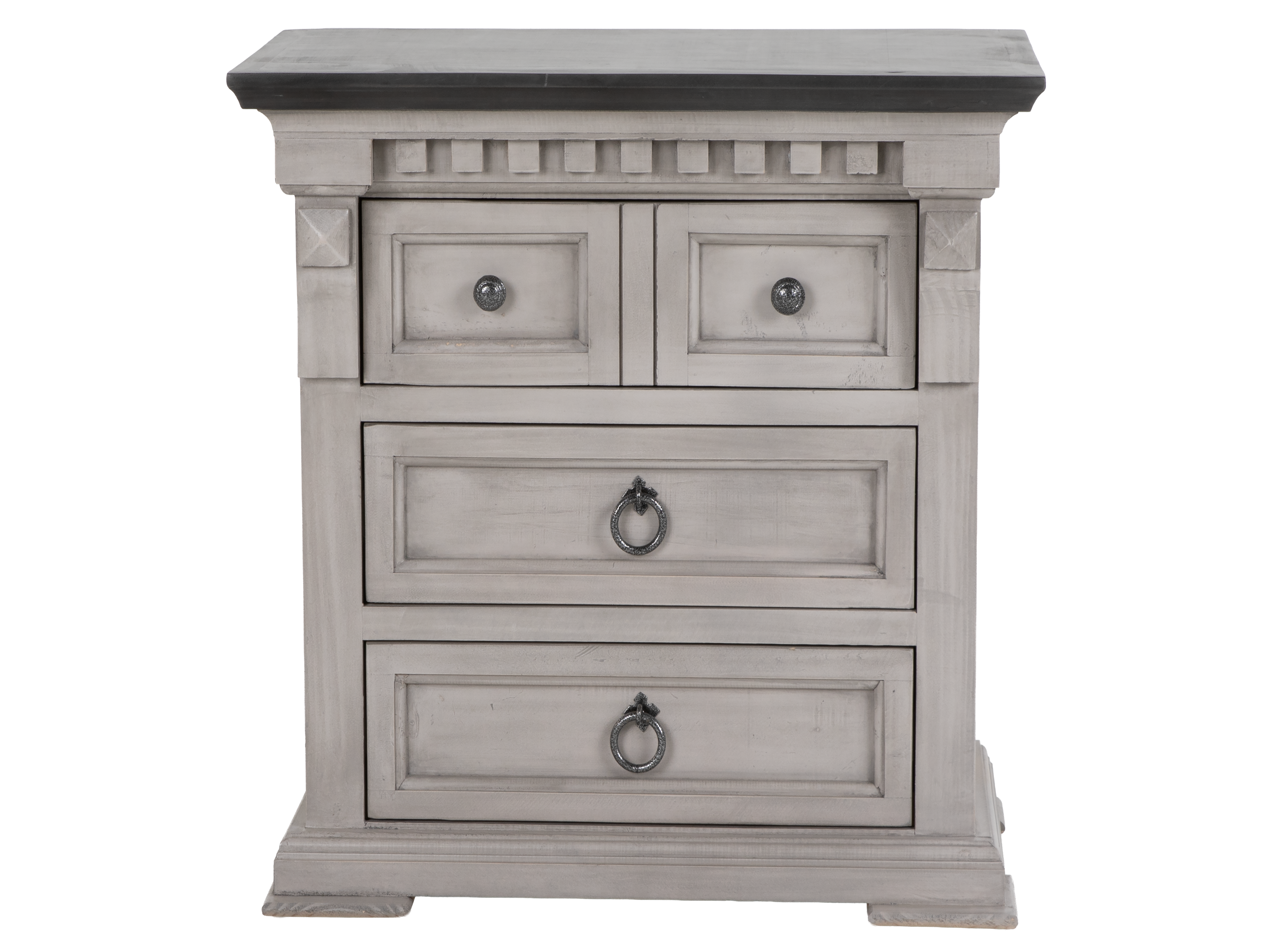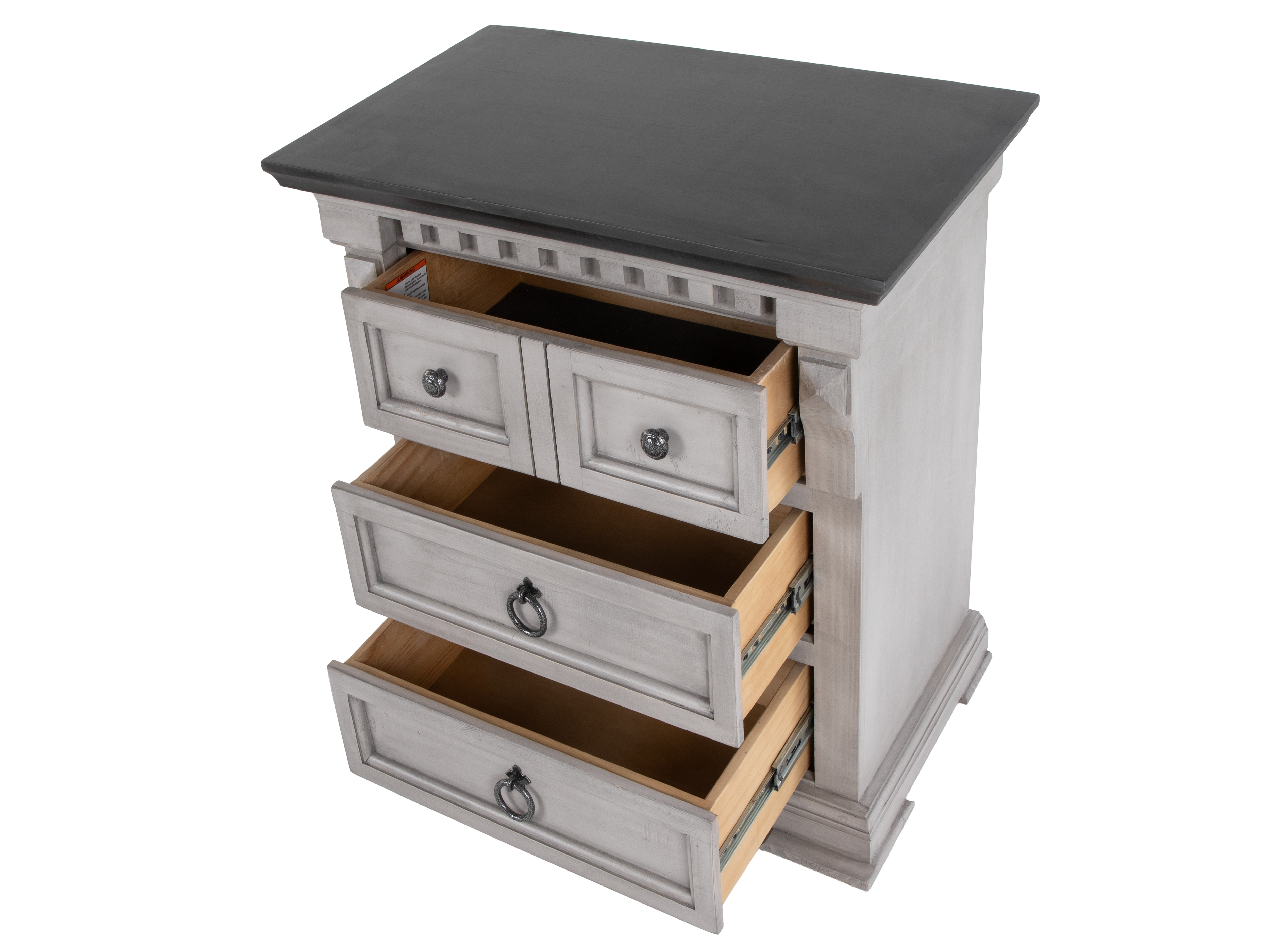 The Mission Hills nightstand includes 4 drawers: two smaller top drawers and two deep lower drawers for bedside storage.